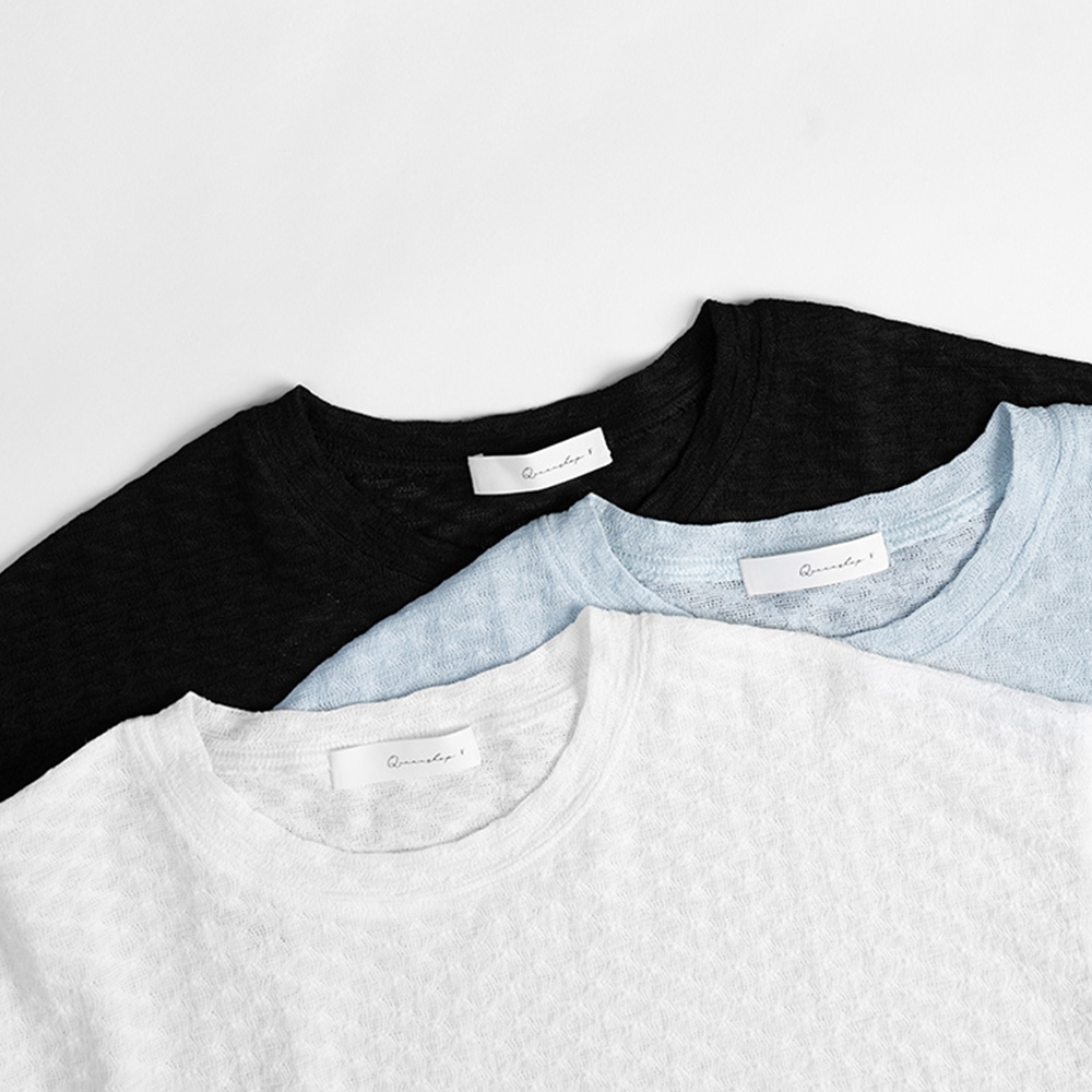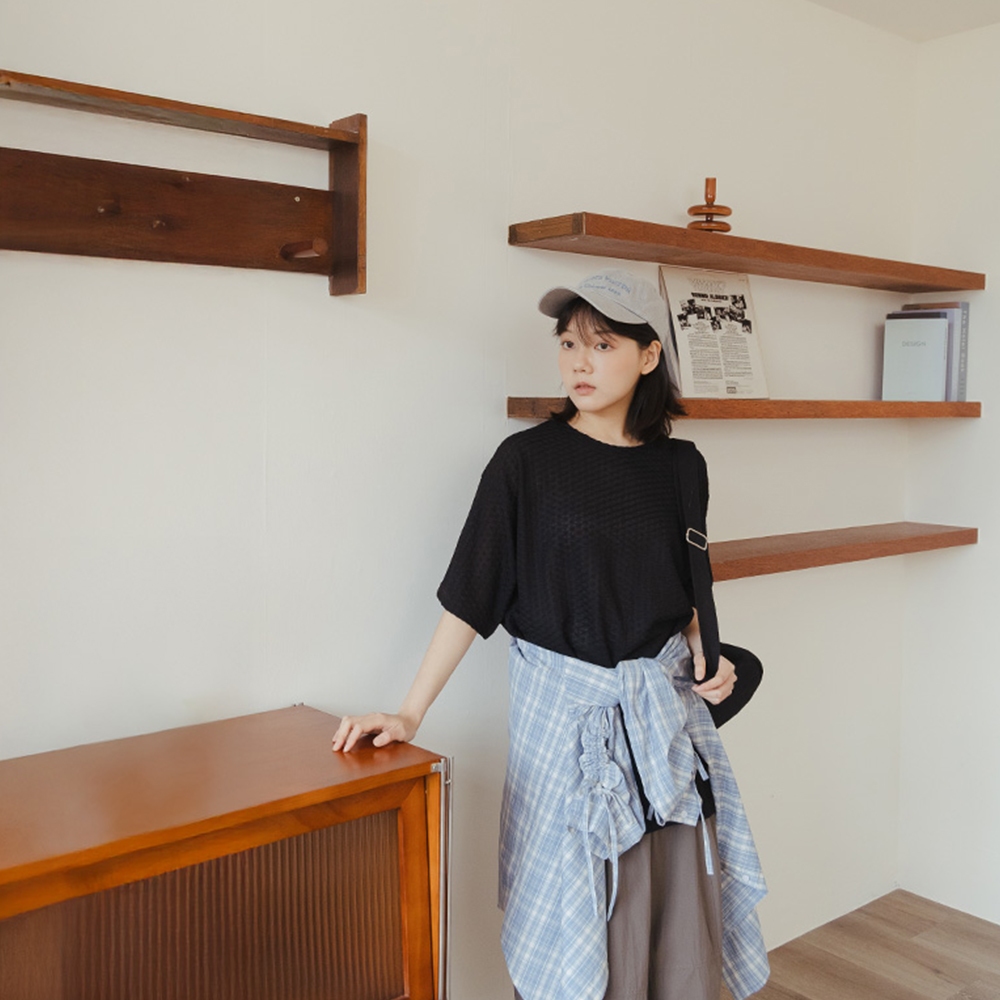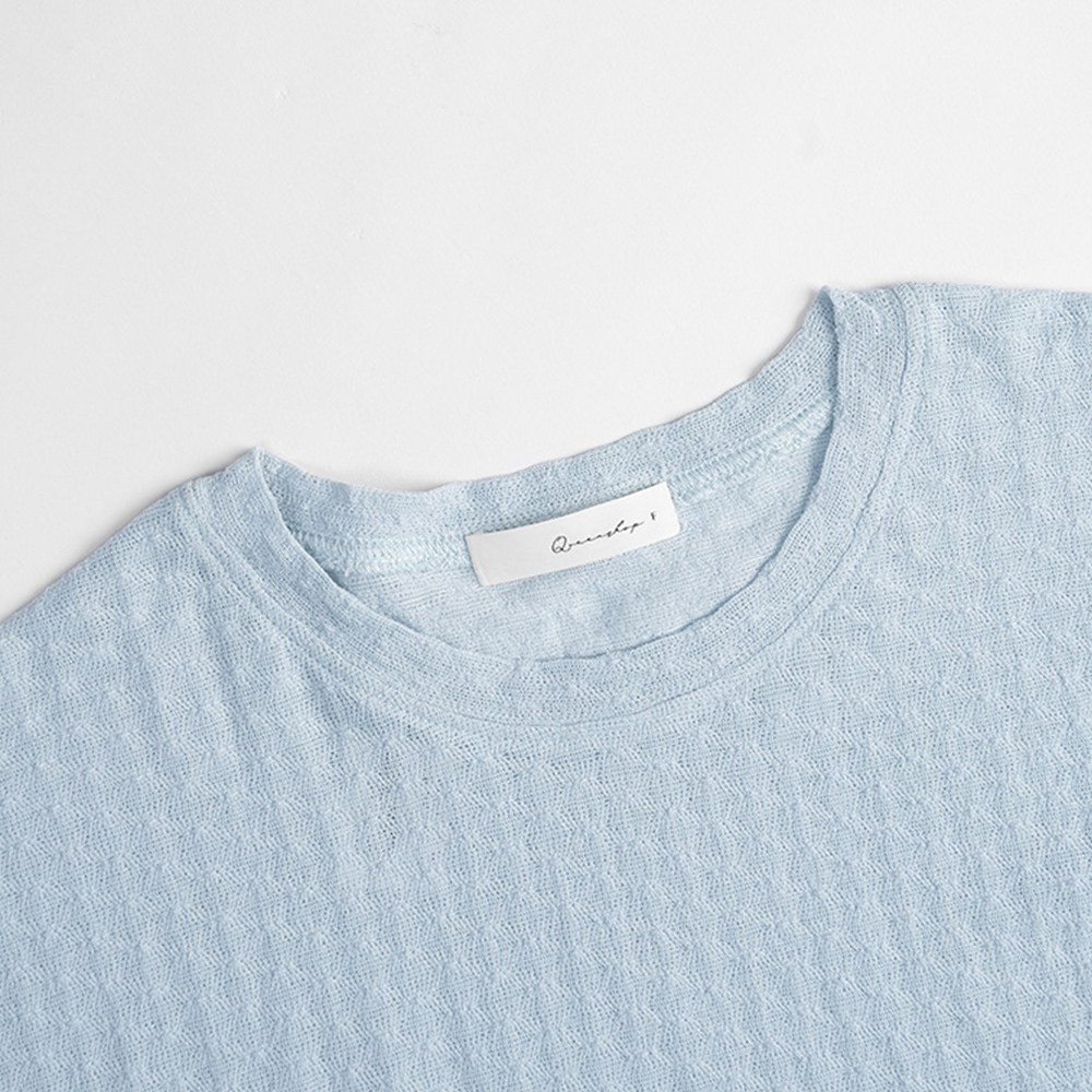 QUEENSHOP_ S 女裝 短袖 菱格緹花設計寬版圓領上衣 三色售 現+預 【01098779】黑|白|藍OthersQUEENSHOP