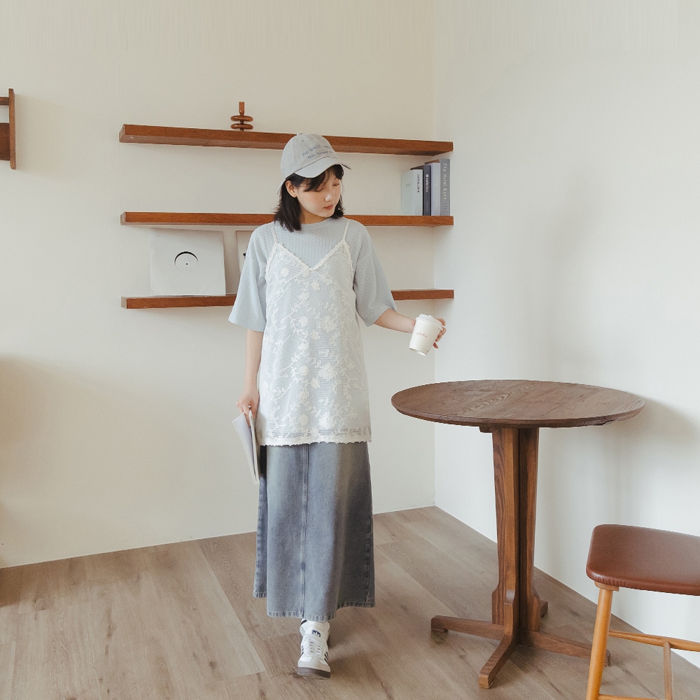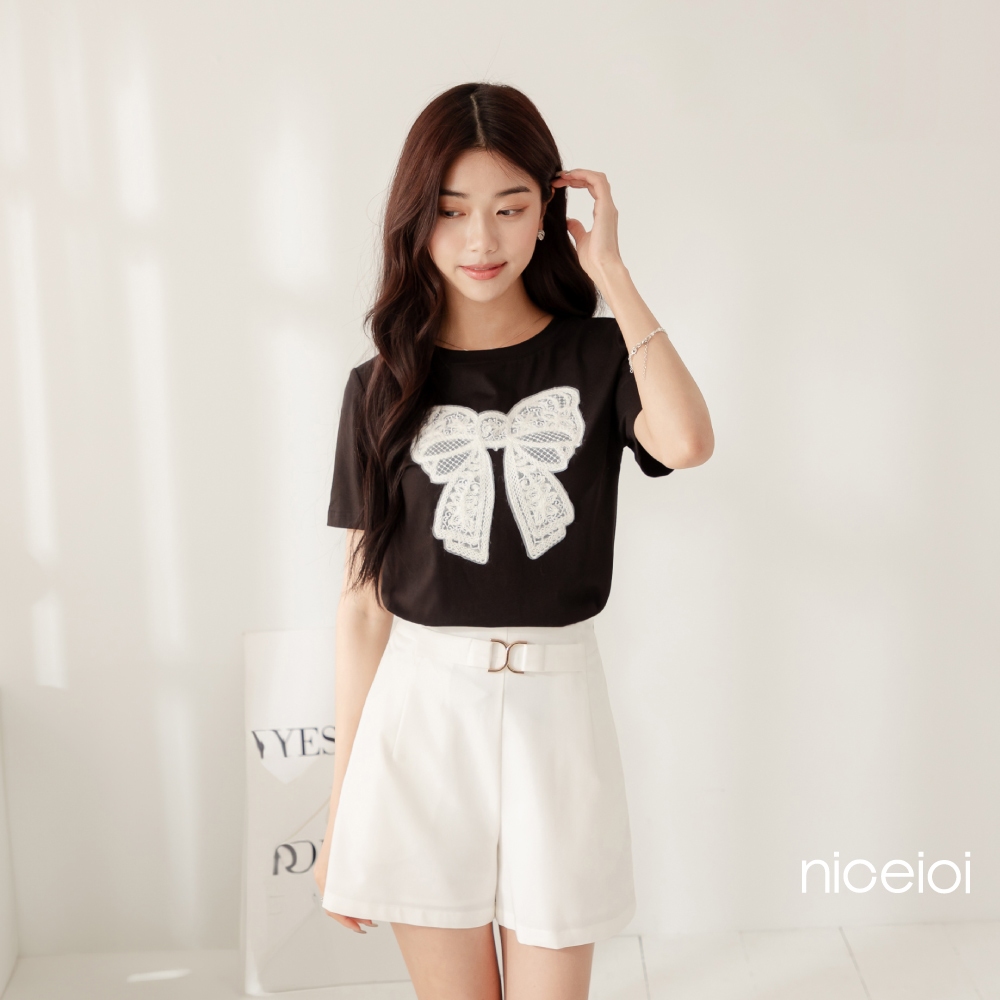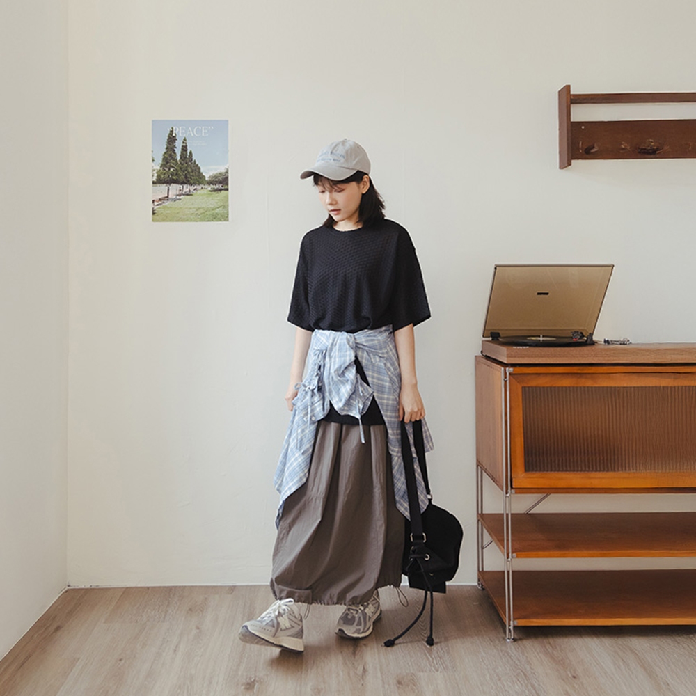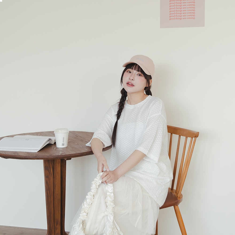 QUEENSHOP_ S 女裝 短袖 菱格緹花設計寬版圓領上衣 三色售 現+預 【01098779】黑|白|藍OthersQUEENSHOP