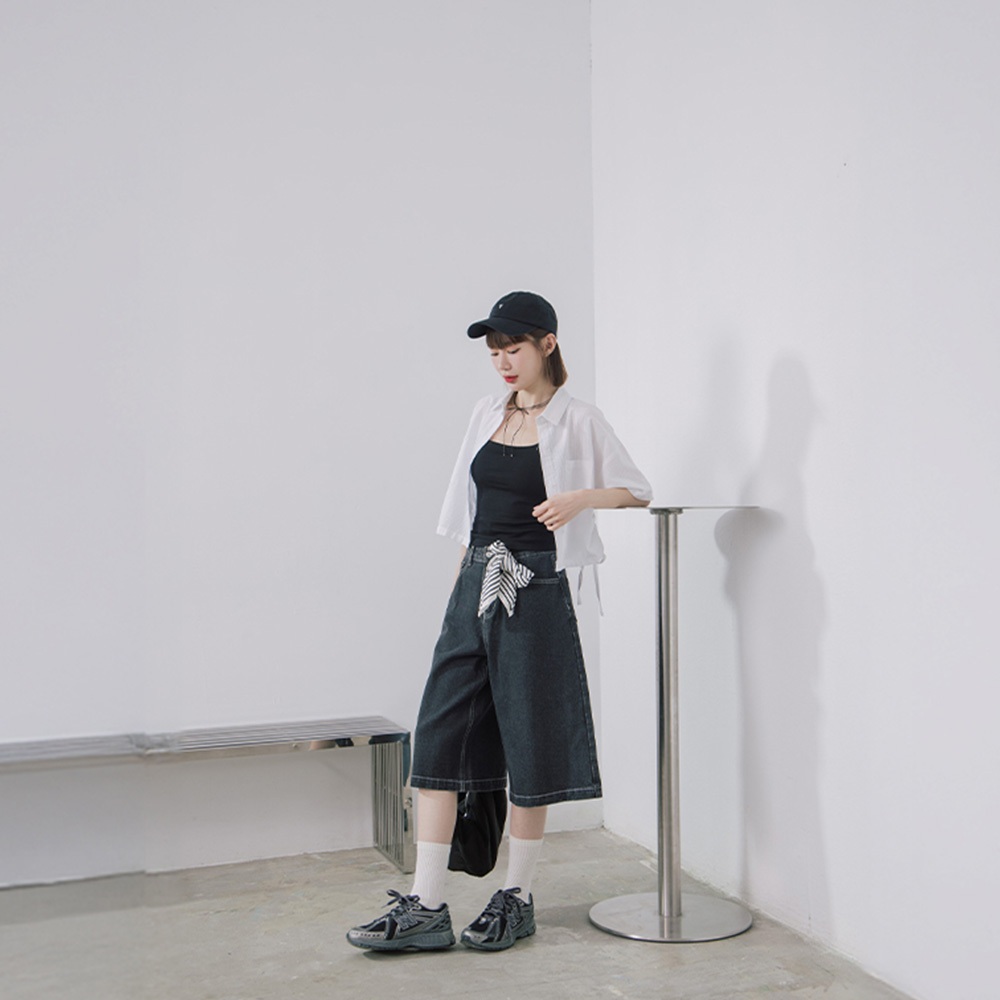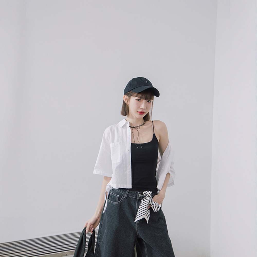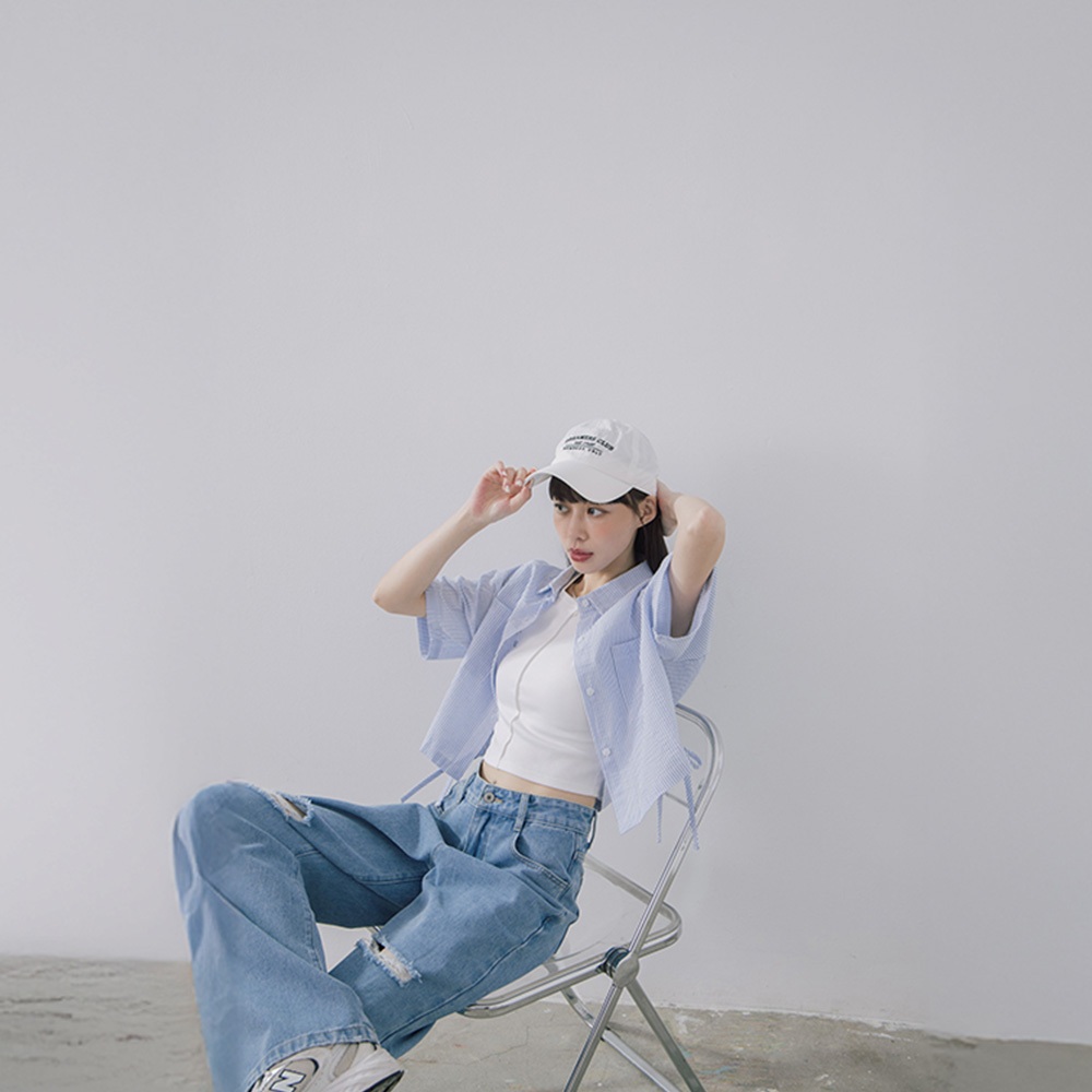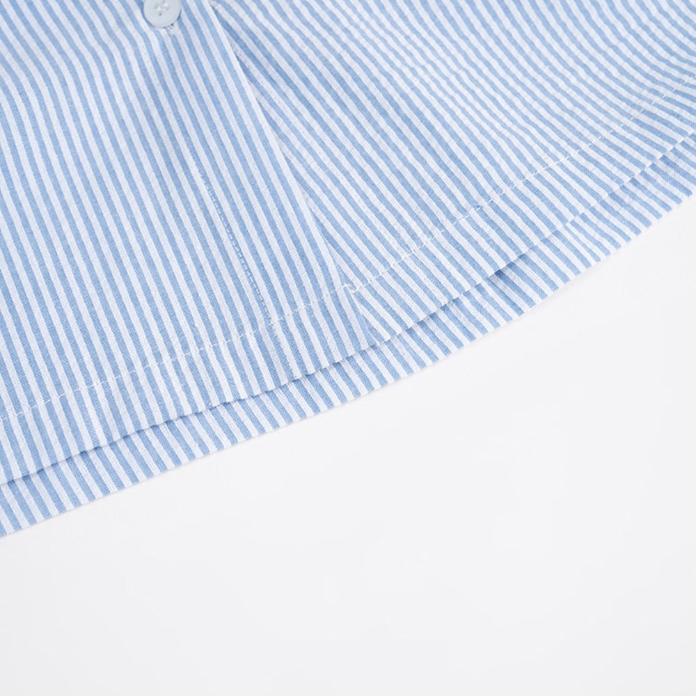 QUEENSHOP_ S 女裝 短袖 條紋側抽繩綁帶短版襯衫 兩色售 現+預 【01025584】白|藍Shirts & BlousesQUEENSHOP
