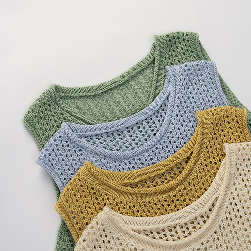 QUEENSHOP_ S 女裝 鏤空洞洞不收邊針織背心上衣 四色售 現+預 【01013452】藍|黃|綠|杏QUEENSHOP