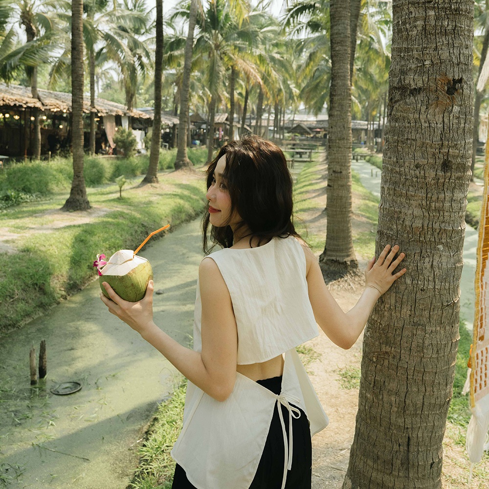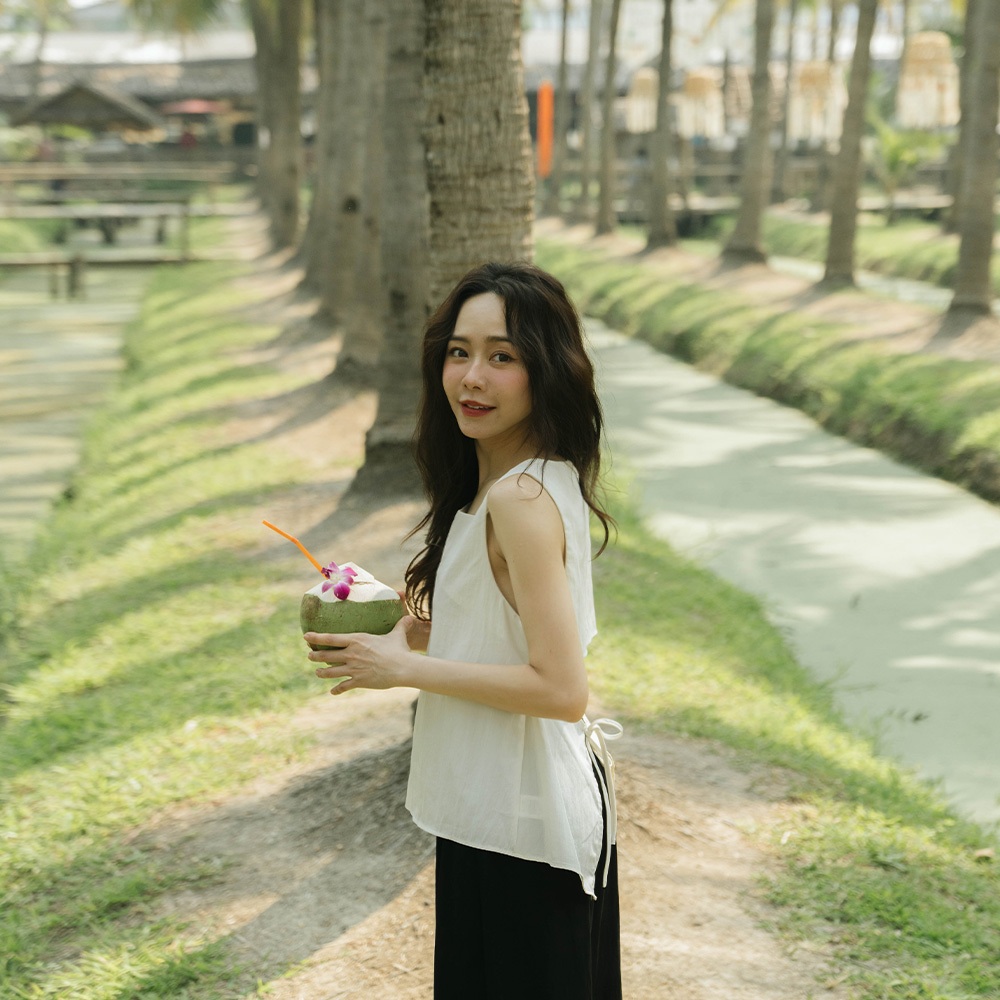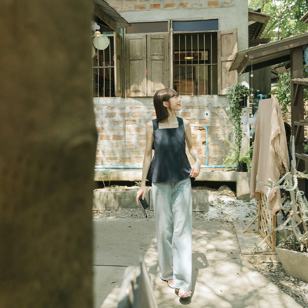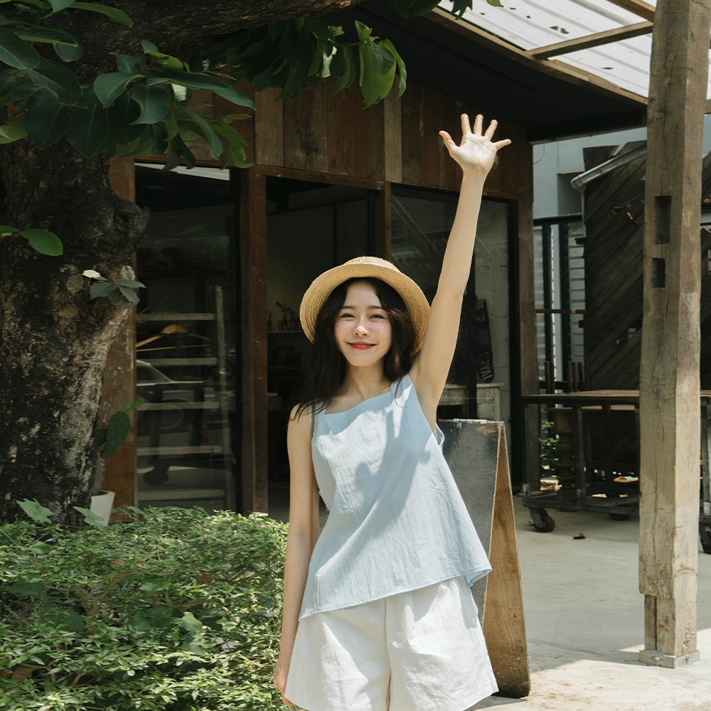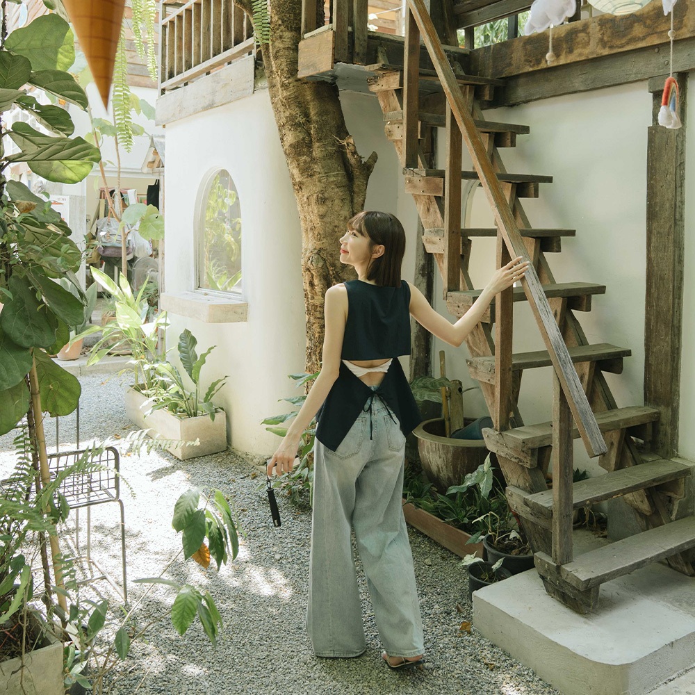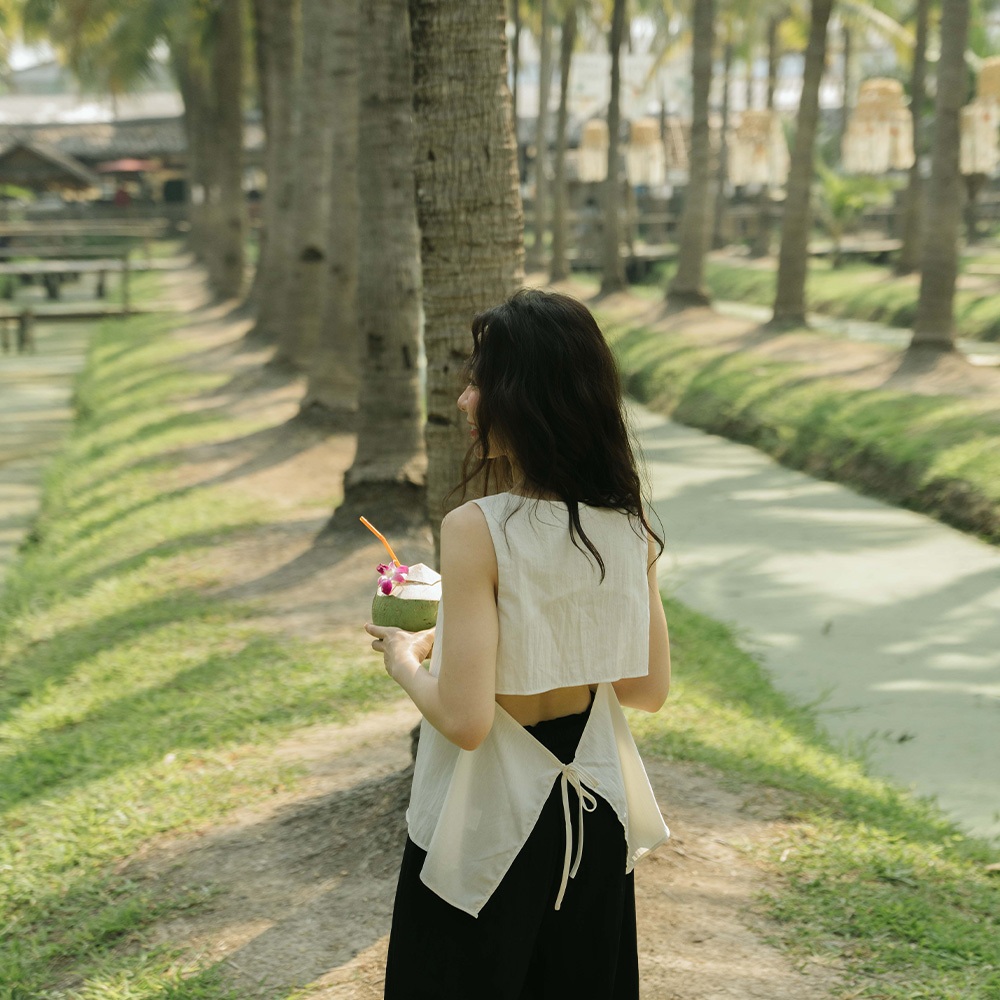 QUEENSHOP_ S 女裝 方領後鏤空綁帶造型背心 三色售 現+預 【01098838】藍|杏|深藍OthersQUEENSHOP