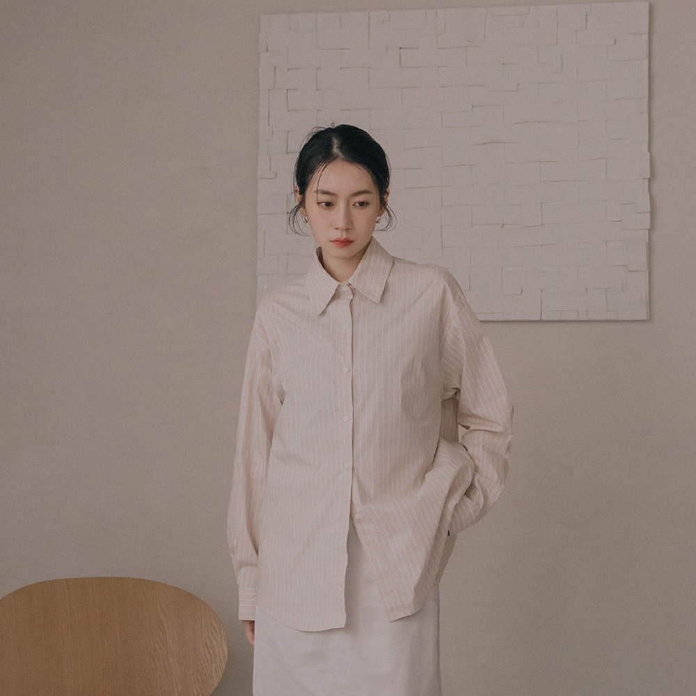 QUEENSHOP_ S 女裝 簡約條紋寬版長袖襯衫 現+預 【01025568】依賣場Shirts & BlousesQUEENSHOP