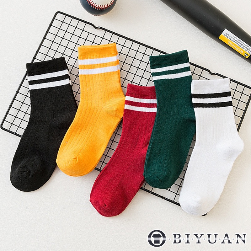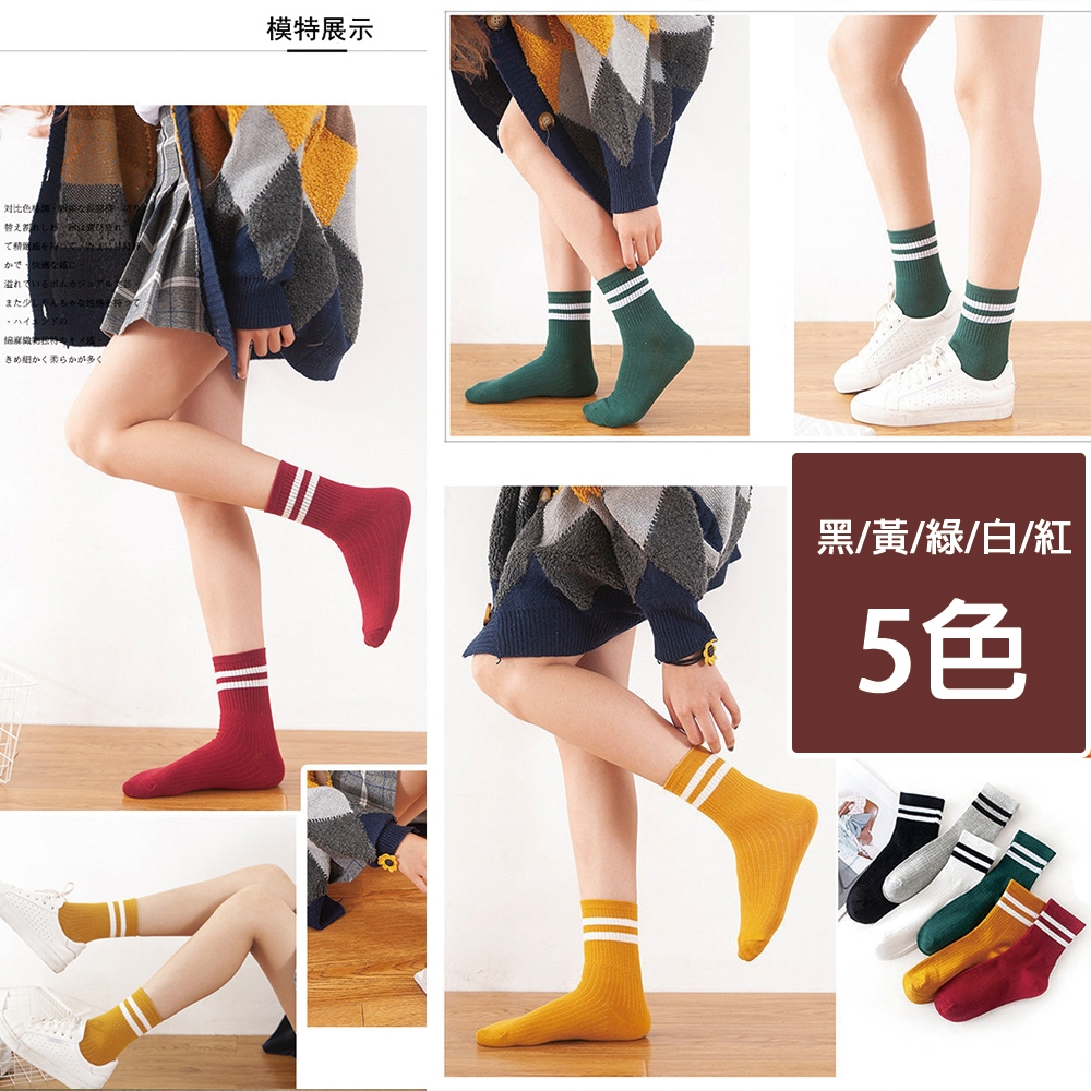 【OBIYUAN】襪子 現貨出清 未滿100不出貨 女生 素面 星星 條紋 格紋 中筒襪 【SR92】白條紋一雙|黑條紋一雙SocksOBIYUAN