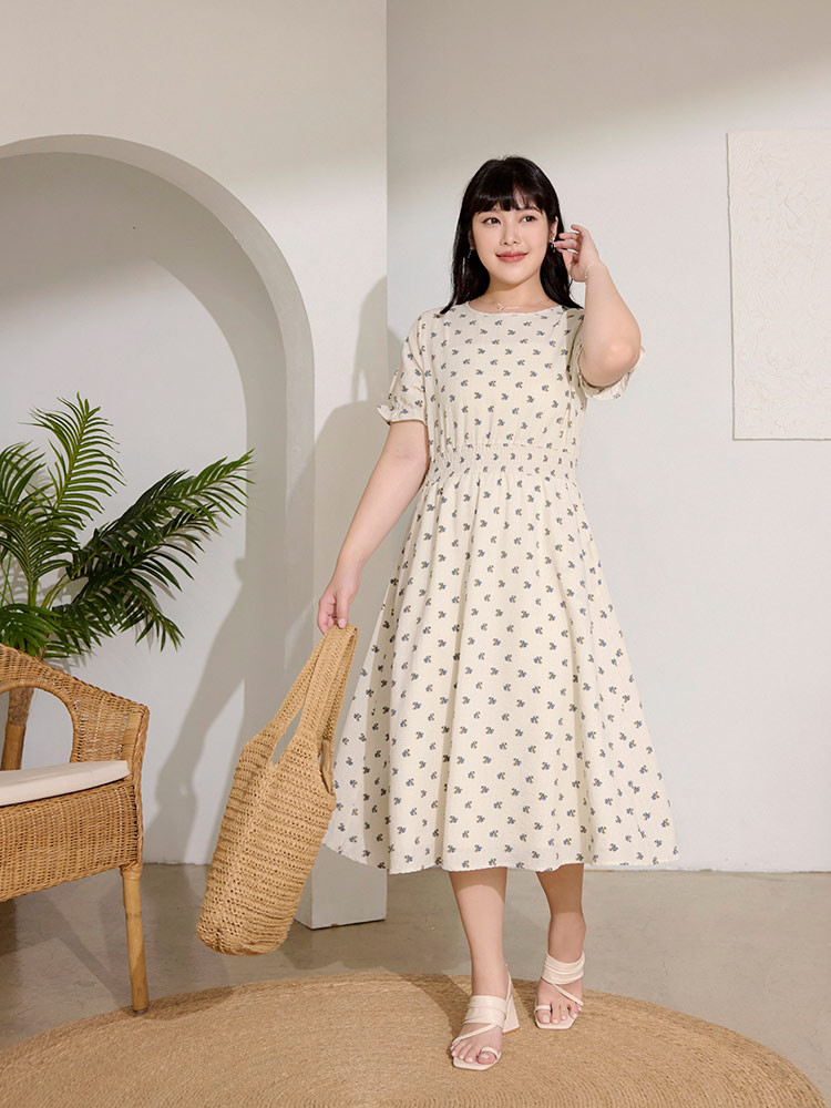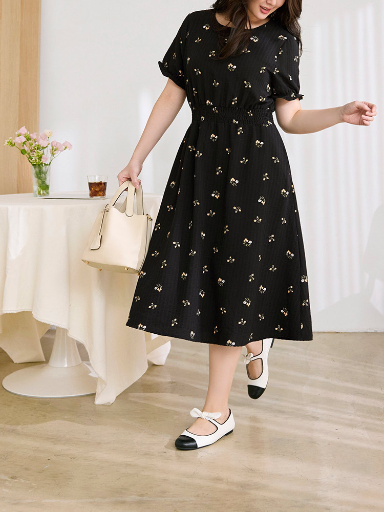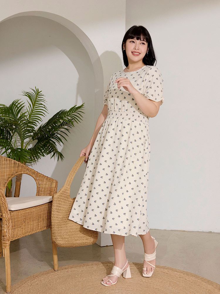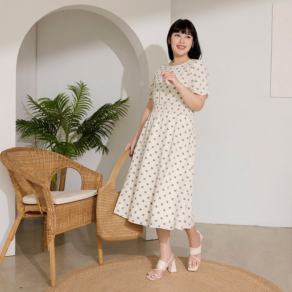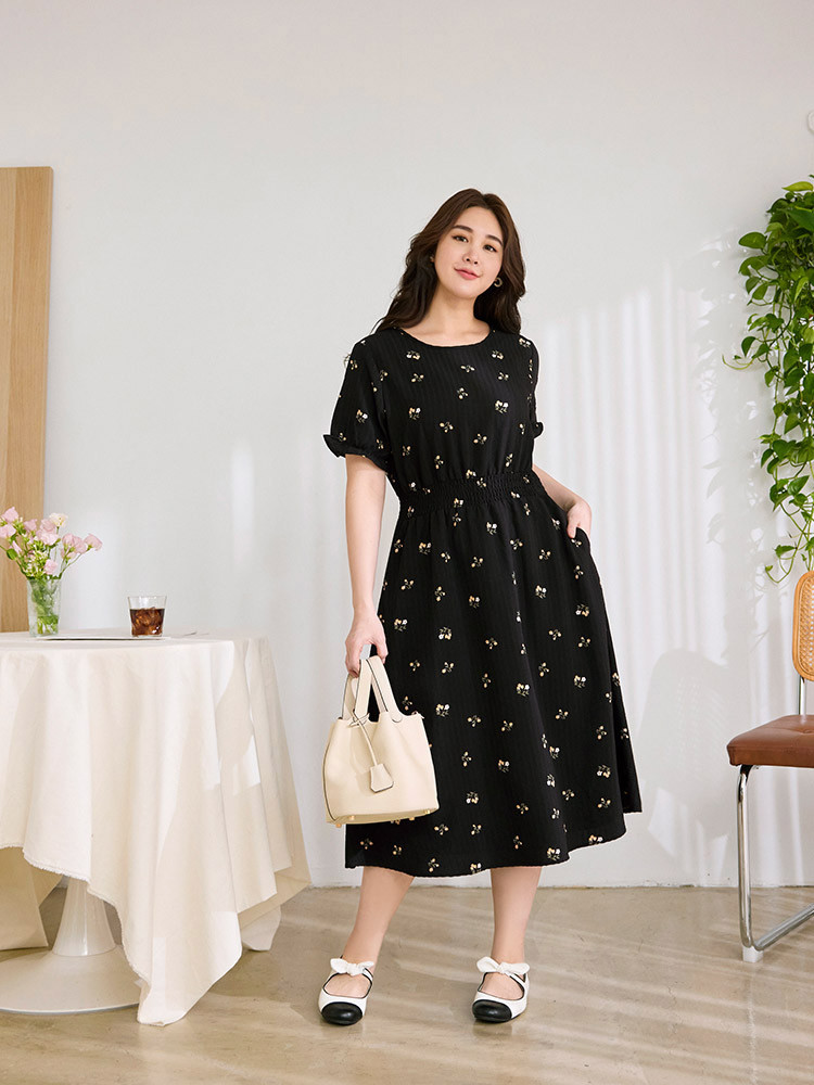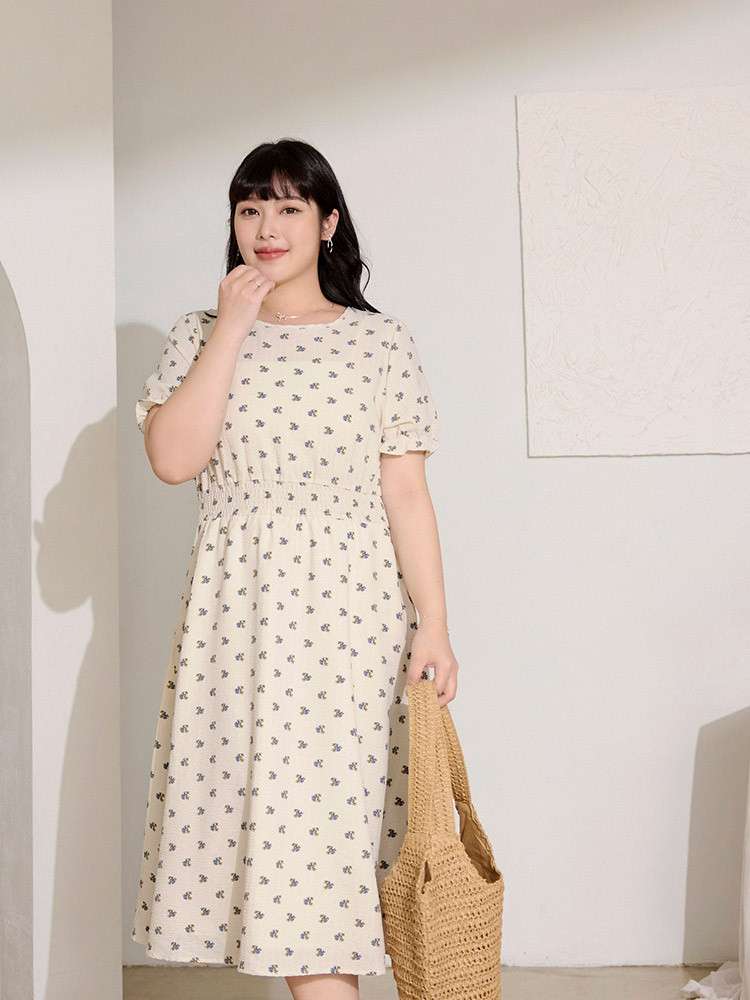 OB嚴選 雲朵自訂款-滿版印花腰鬆緊傘襬洋裝 《DA10517》米白,XL|米白,2L|米白,3L|米白,4L|黑,XL|黑,2L|黑,3L|黑,4LOB嚴選官方旗艦店