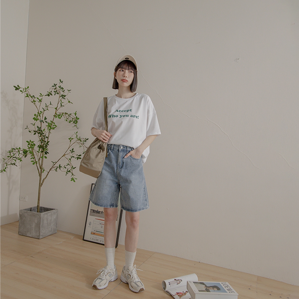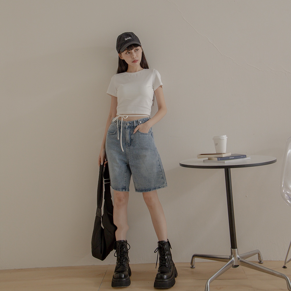 QUEENSHOP_ S 女裝 簡約水洗造型高腰五分牛仔短褲 S/M/L 現+預 【04120109】