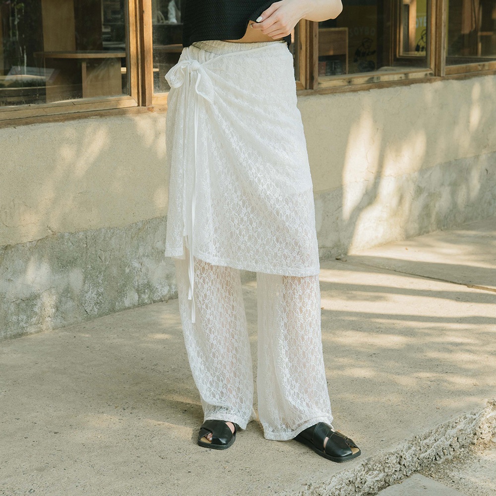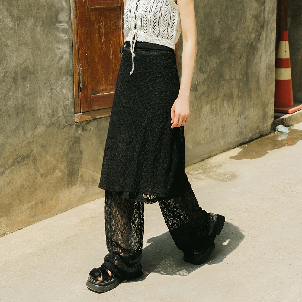 QUEENSHOP_ S 女裝 蕾絲鏤空設計兩件式褲裙 兩色售 現+預【04101950】黑|白PantsQUEENSHOP