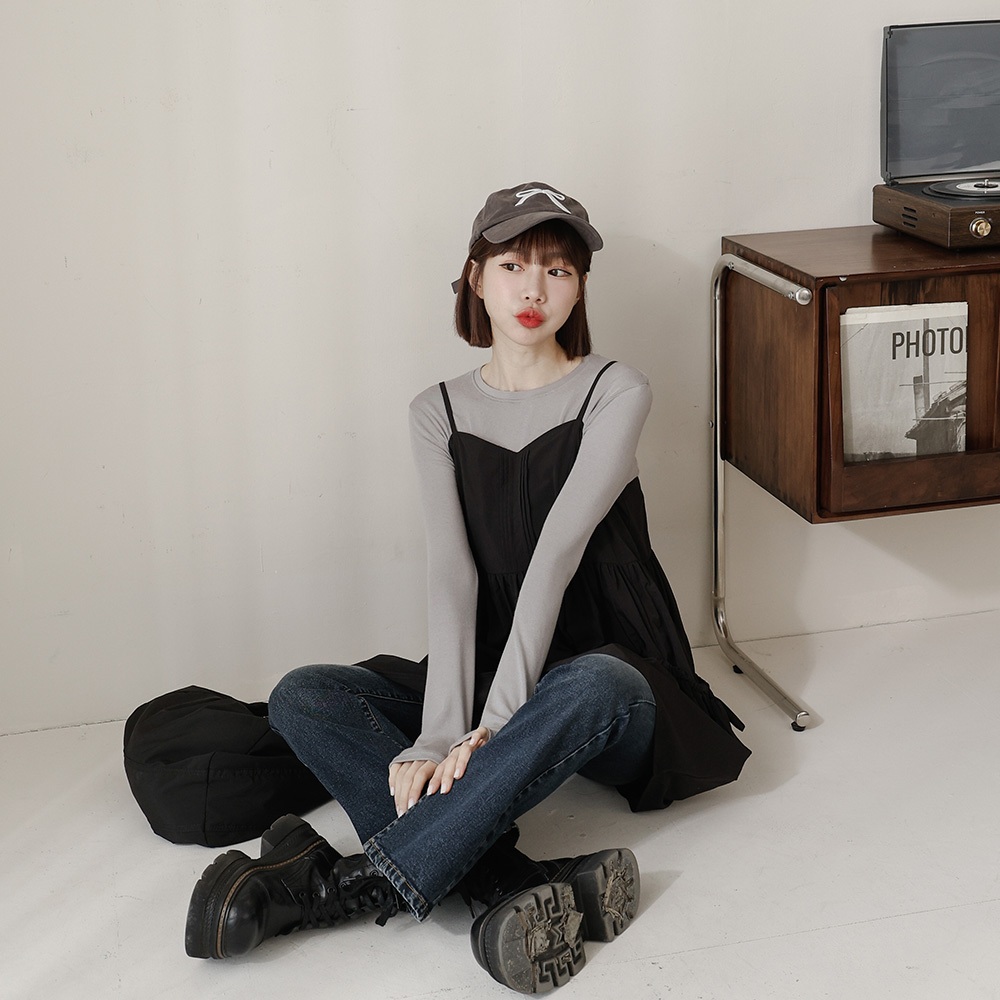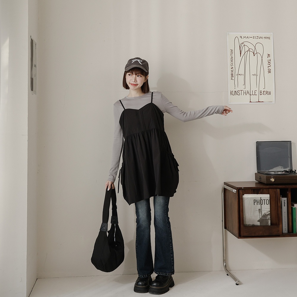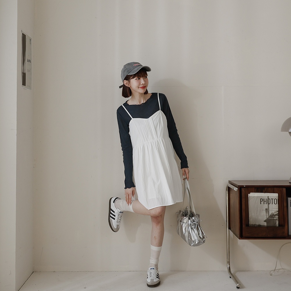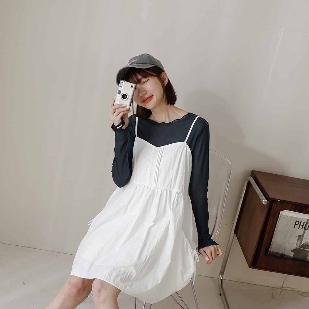 QUEENSHOP_ S 女裝 前打褶V領大口袋細肩短洋裝 兩色售 現+預 【01086975】黑|白QUEENSHOP