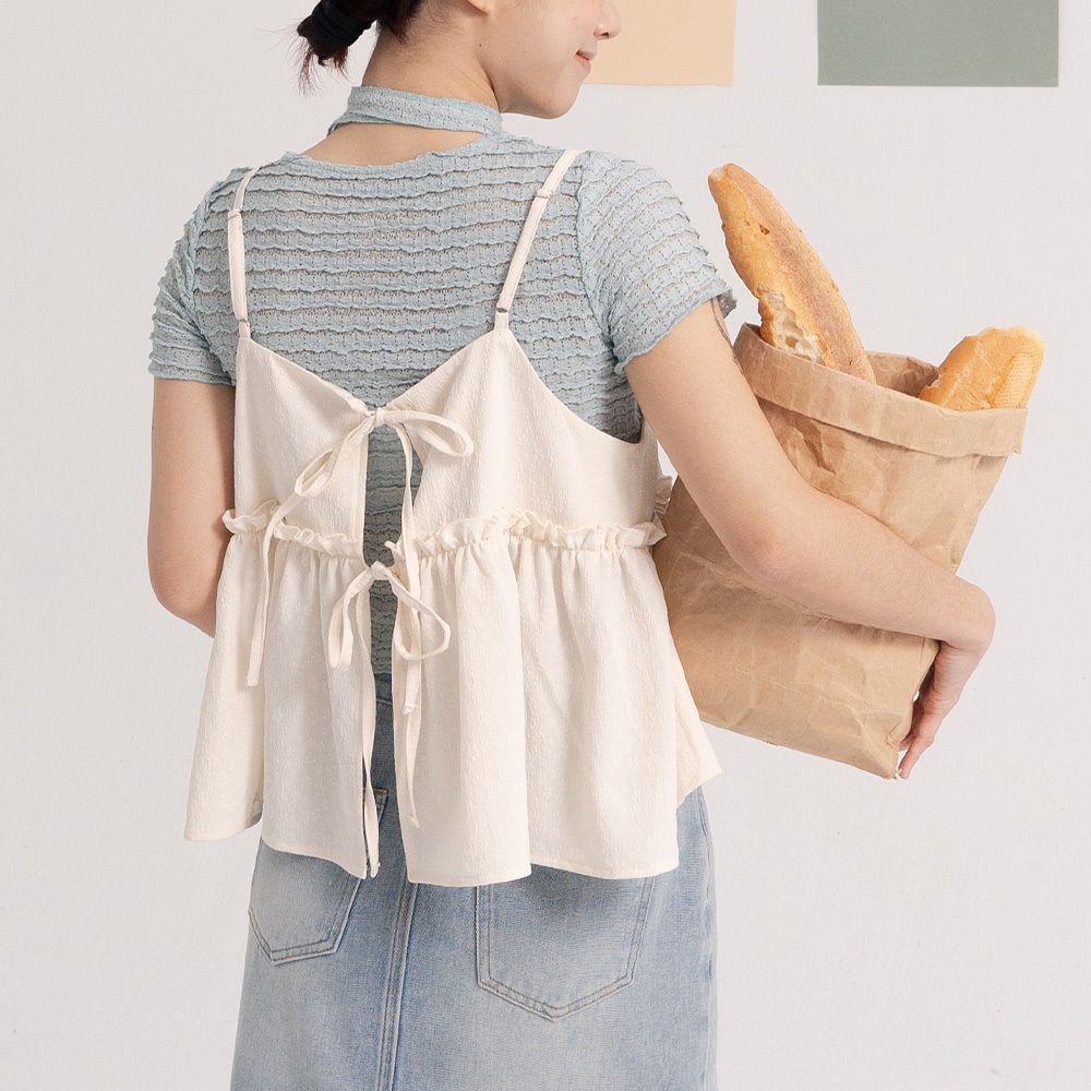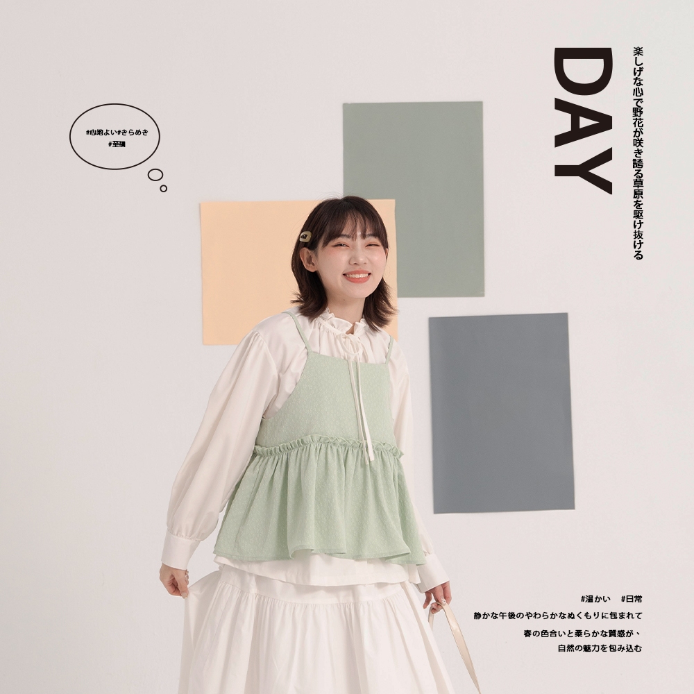 QUEENSHOP_ S 女裝 荷葉緹花傘擺罩衫背心 杏色售 現+預 【01098909】杏Tanks & CamisolesQUEENSHOP