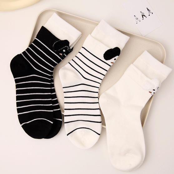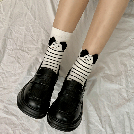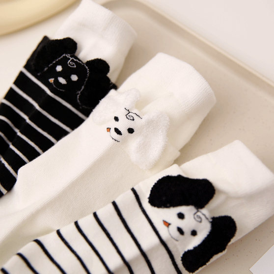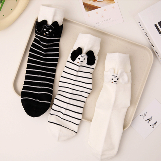 【ohi】長筒襪女襪子 經典條紋 立體 卡通狗狗 長襪 中筒襪 學院風 棉襪 高筒棉襪 百搭 可愛 中筒棉襪 AWD26純白色|白條紋|黑條紋SocksOHI衣著