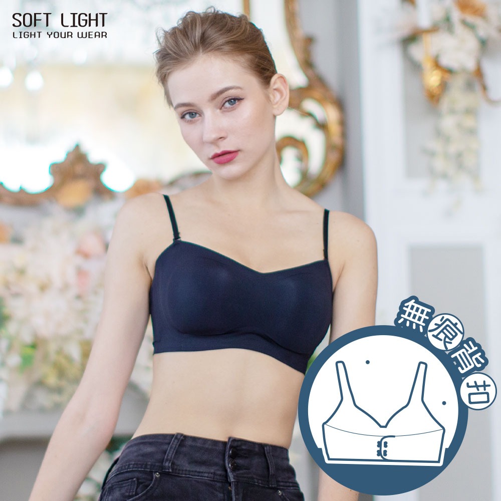 SOFT LIGHT -「PonPon拉提」可調可拆肩帶平口內衣(黑色)M|L|XLBrasSOFT LIGHT 舒芙蕾輕盈內衣