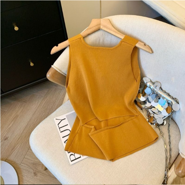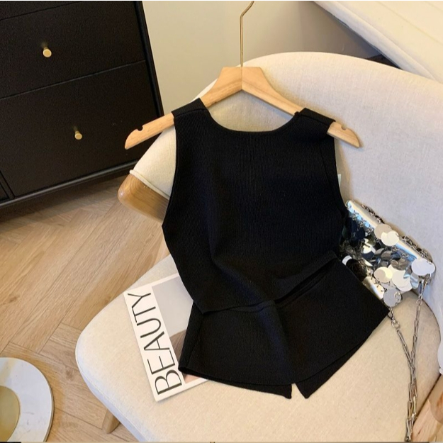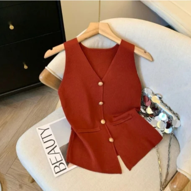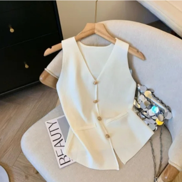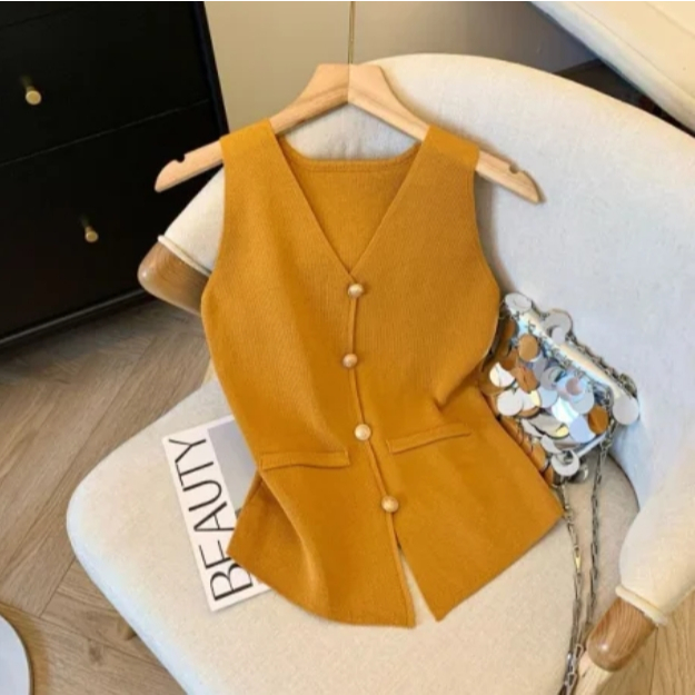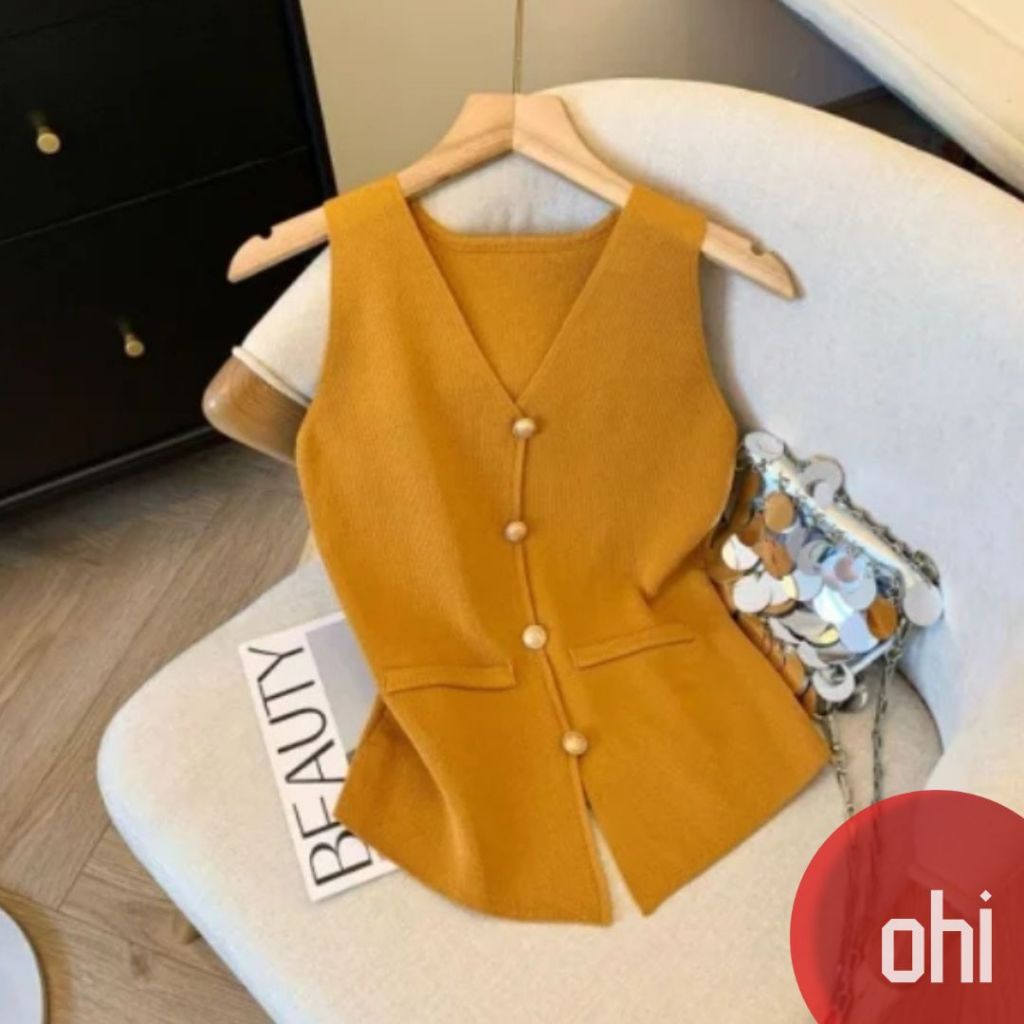 【ohi】韓版設計感V領無袖外穿背心 針織開衫 罩衫 外套 小外套 開衫外套 女上衣 女裝 GWHD88黑色,F碼(均碼40-55KG可穿)|白色,F碼(均碼40-55KG可穿)|黃色,F碼(均碼40-55KG可穿)|紅色,F碼(均碼40-55KG可穿)VestsOHI衣著