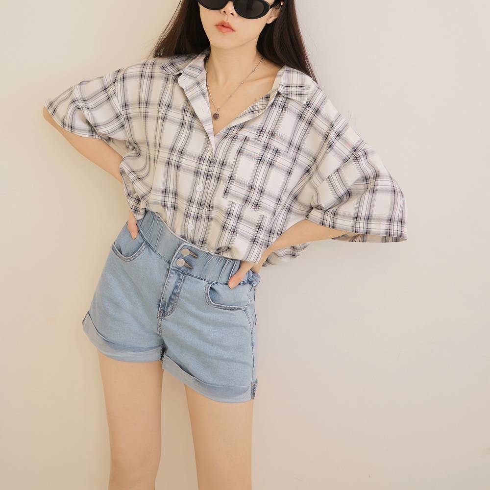 OB嚴選 棉質雪花刷色寬版鬆緊腰牛仔短褲 《BA7214》大尺碼/現貨/女裝藍,3L|藍,S|藍,M|藍,L|藍,XL|藍,2LShortsOB嚴選官方旗艦店