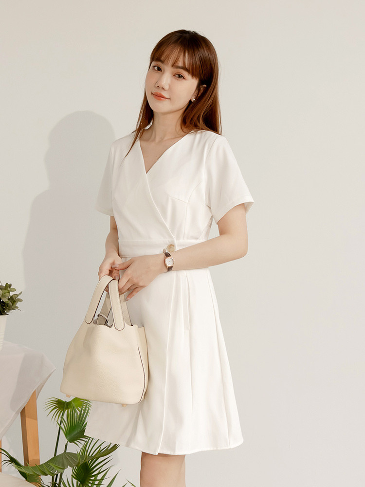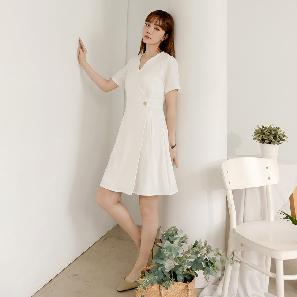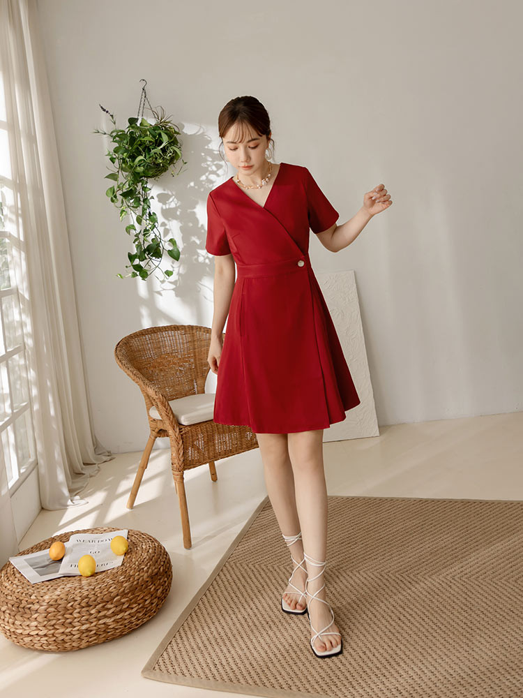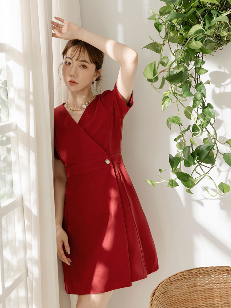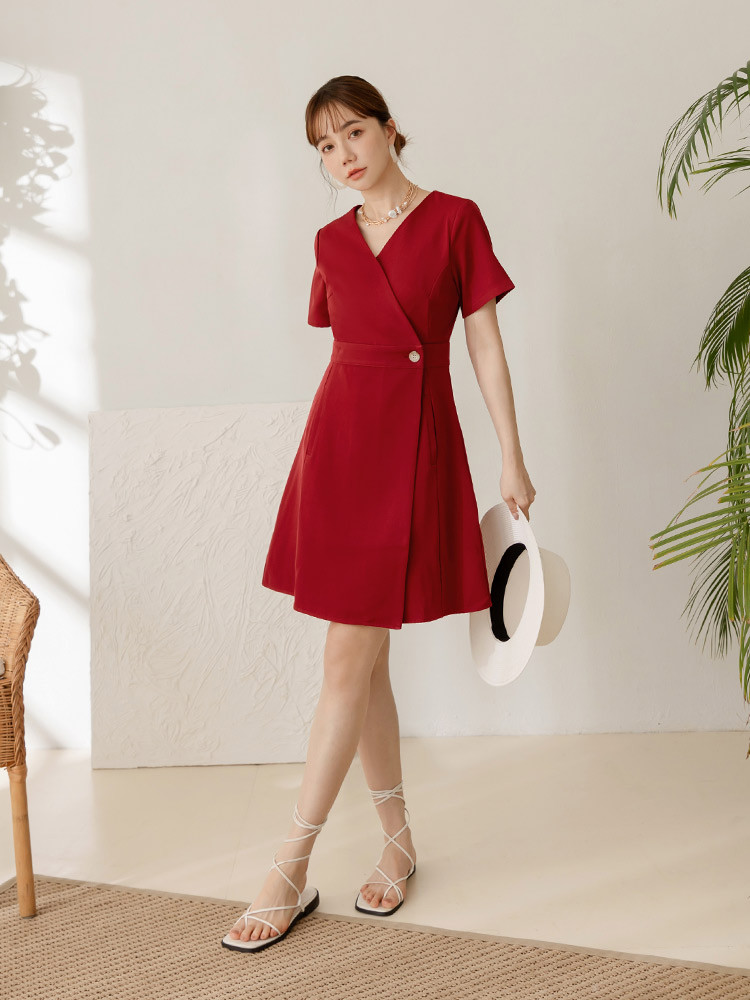 OB嚴選 交錯V領短袖收腰短洋裝 《DA9673》白,S|白,M|白,L|白,XL|白,2L|白,3L|紅,S|紅,M|紅,L|紅,XL|紅,2L|紅,3LOB嚴選官方旗艦店