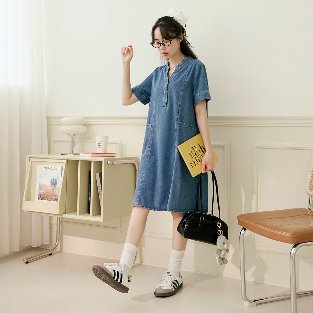 OB嚴選 純棉V領半開襟大口袋牛仔洋裝 《DA10474》丹寧藍,M|丹寧藍,L|丹寧藍,XL|丹寧藍,2L|丹寧藍,3L|丹寧藍,4L|深丹寧藍,M|深丹寧藍,L|深丹寧藍,XL|深丹寧藍,2L|深丹寧藍,3L|深丹寧藍,4LOB嚴選官方旗艦店
