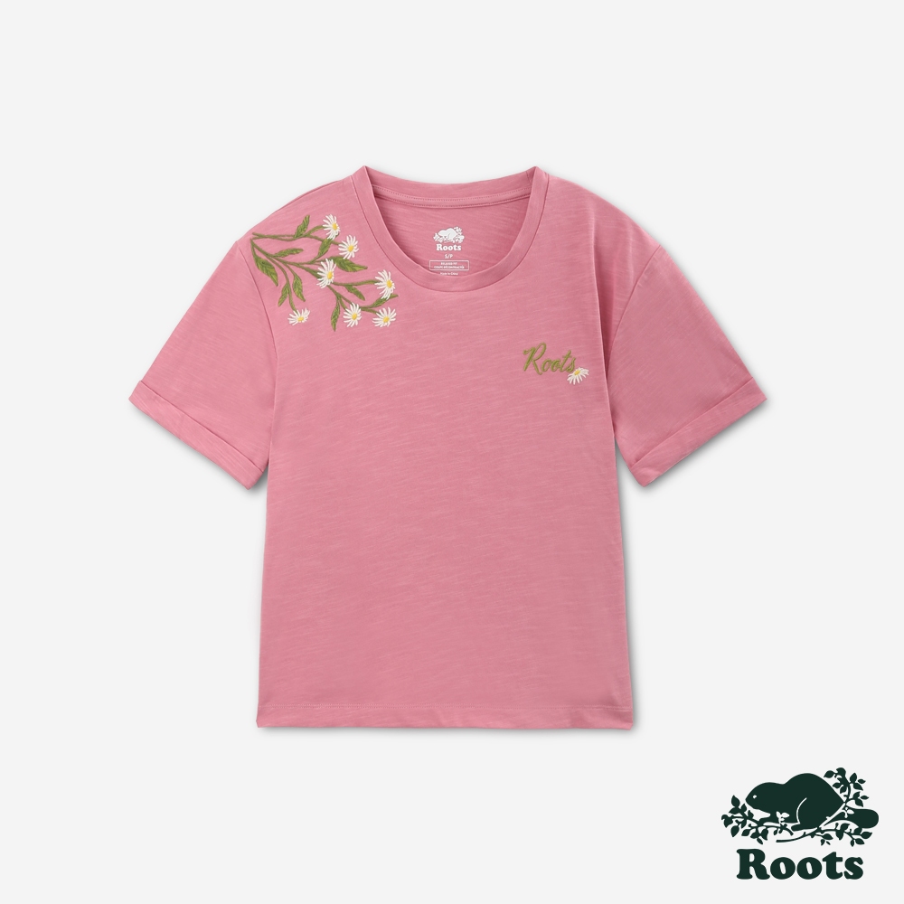 Roots 女裝- FLORAL ROLL SLV CROPPED短袖T恤粉紅色,XS|粉紅色,S|粉紅色,M|粉紅色,LT-shirtsRoots 官方旗艦店