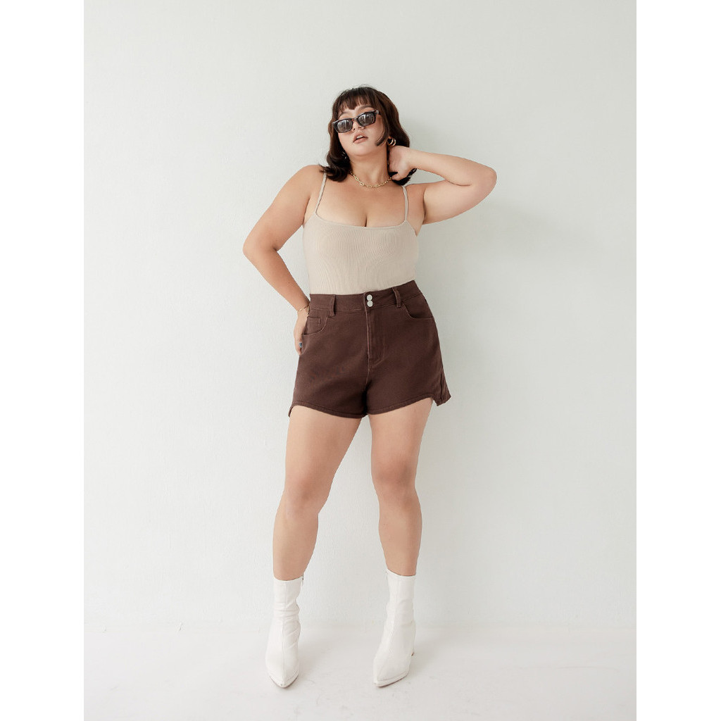 【PolyLulu】 MUA!可可辣妹特殊剪裁高腰彈性斜紋短褲 中大尺碼褲子白色,2XL|白色,3XL|白色,4XL|棕色,2XL|白色,XL|棕色,L|棕色,XL|棕色,3XL|棕色,4XL|白色,LShortsPOLY LULU丨BEAUTY HAS NO SIZE 中大尺碼女裝