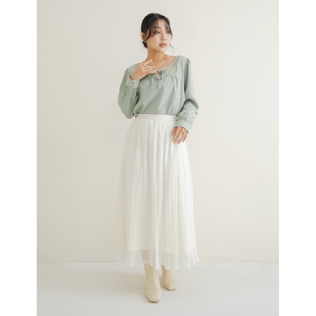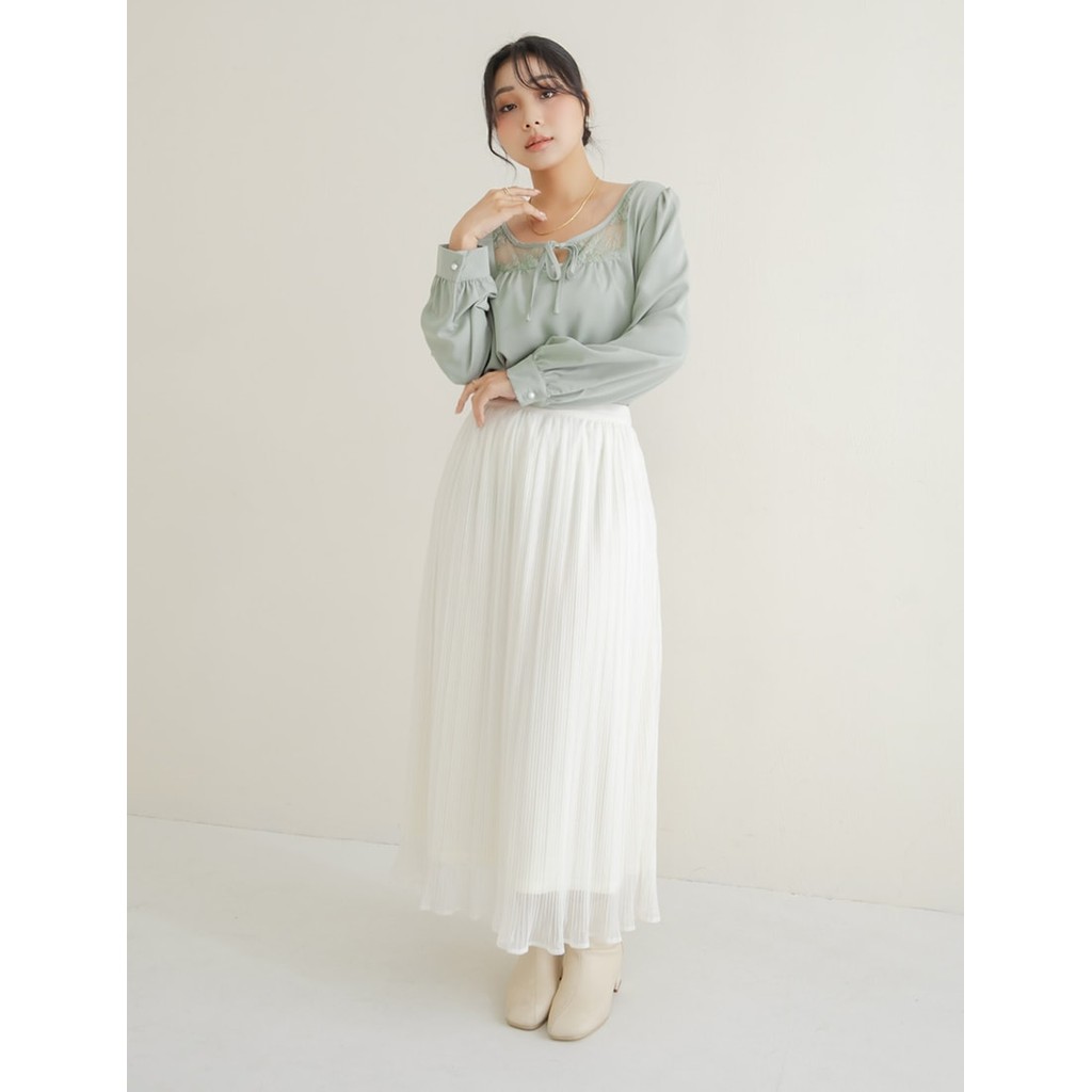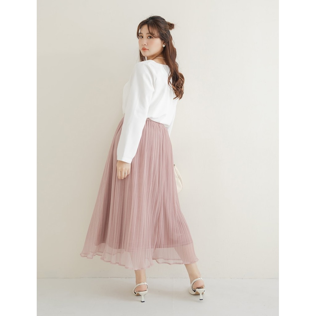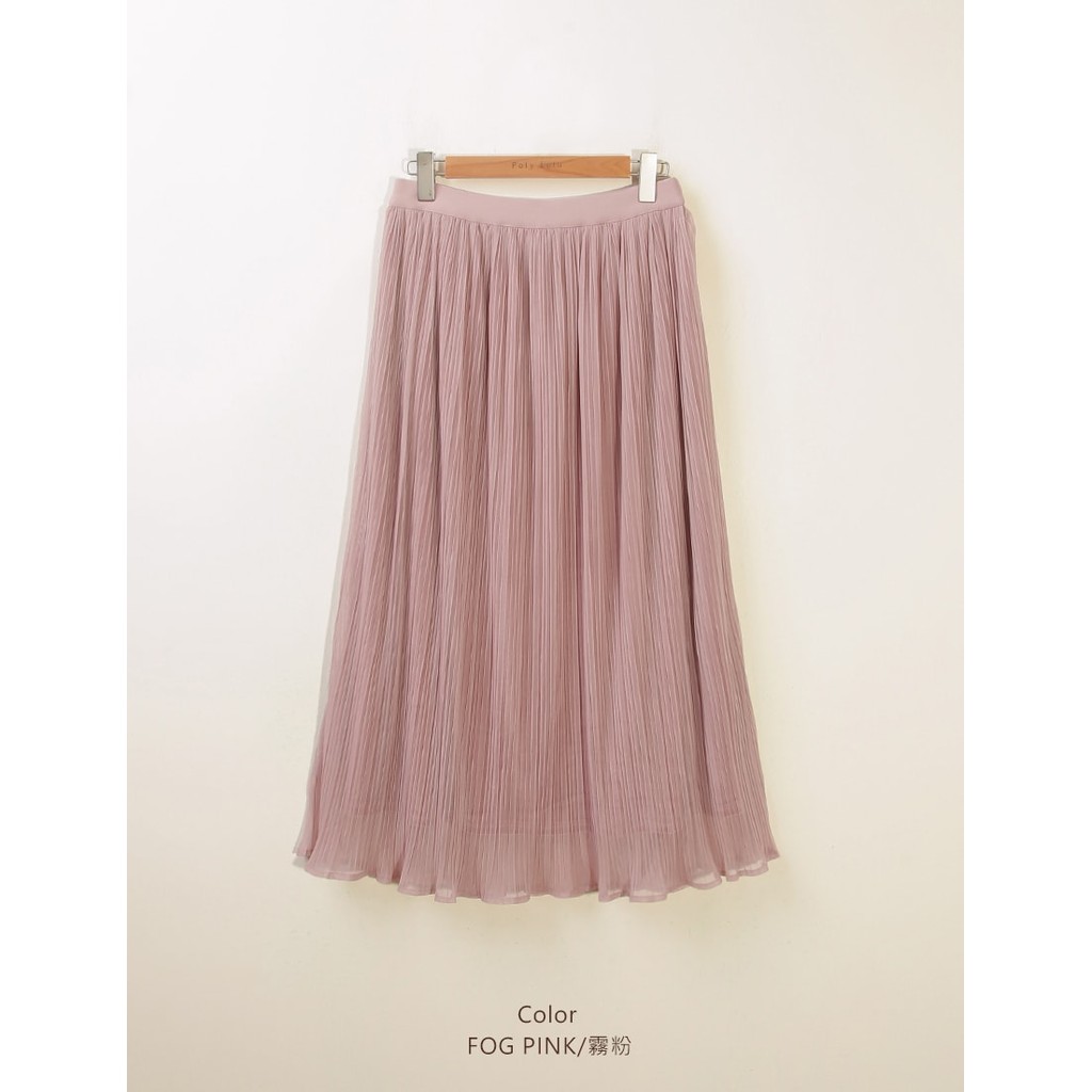 【PolyLulu】 MISS.絕美壓褶雪紡微光澤蜜桃絨鬆緊長裙 中大尺碼裙子