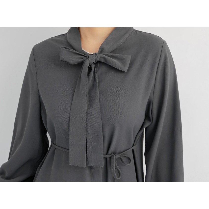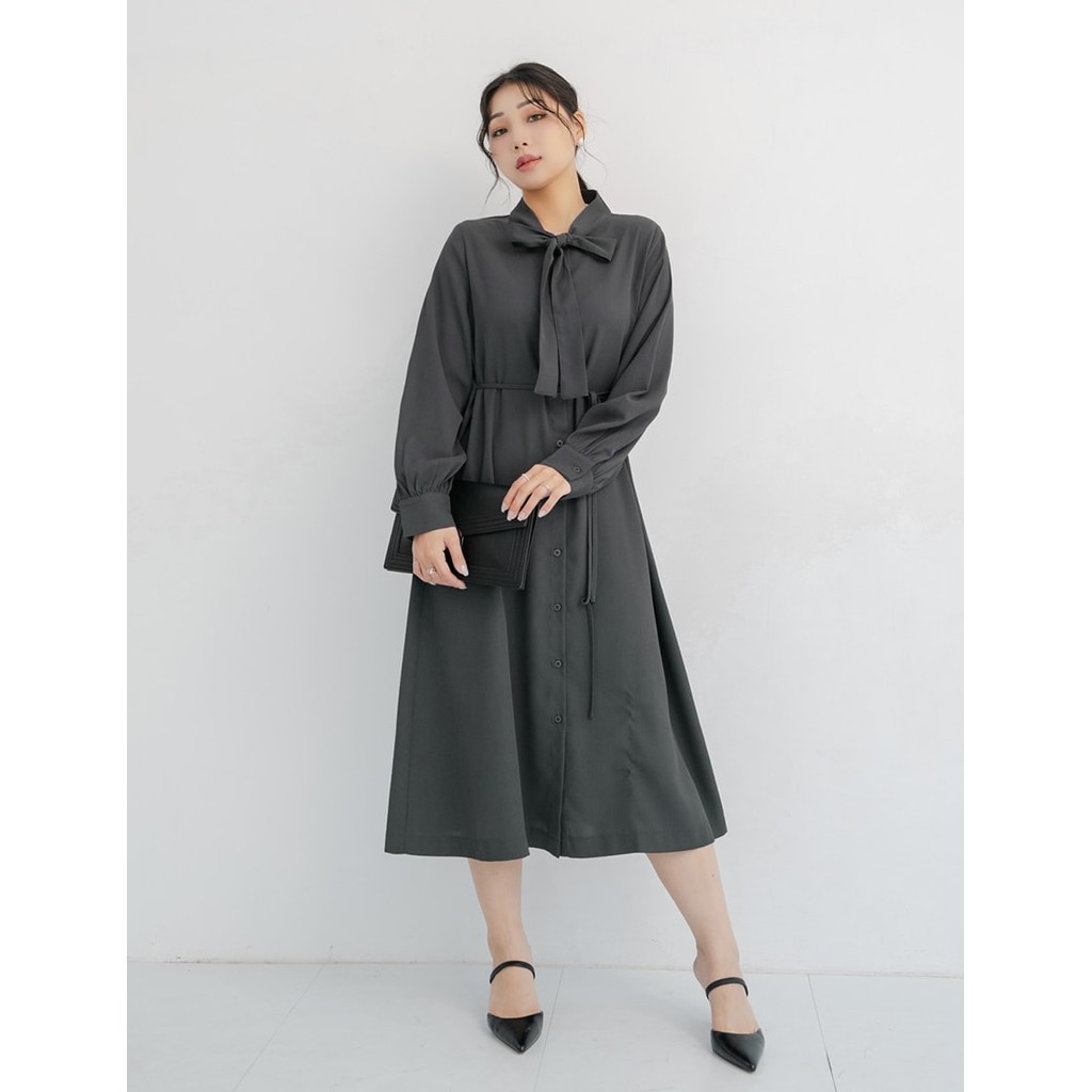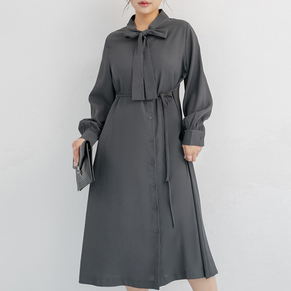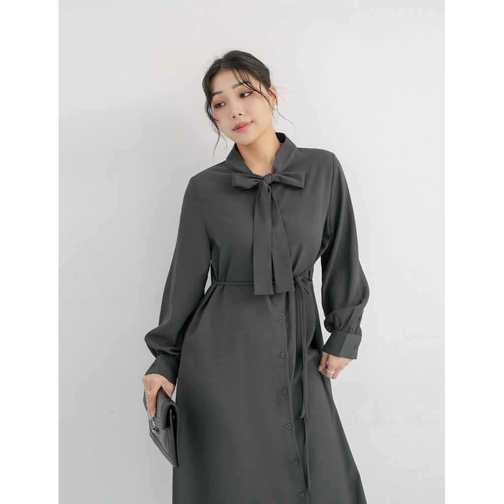 【PolyLulu】 MISS.秋冬氣質典雅排釦綁帶澎袖洋裝 中大尺碼洋裝 深灰色L|XL|2XL|3XLPOLY LULU丨BEAUTY HAS NO SIZE 中大尺碼女裝