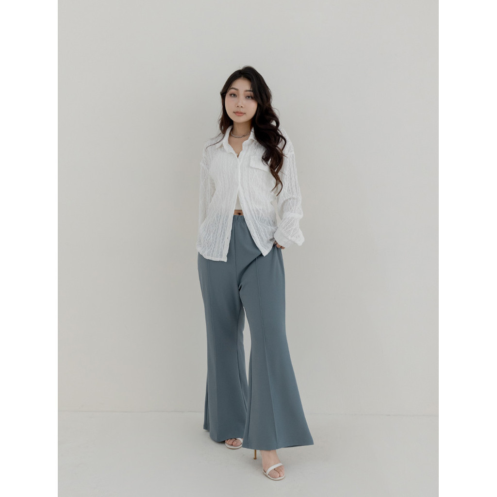 【PolyLulu】 MUA!微辣中線修飾鬆緊喇叭長褲 中大尺碼褲子 藍色L|XL|2XL|3XLPantsPOLY LULU丨BEAUTY HAS NO SIZE 中大尺碼女裝