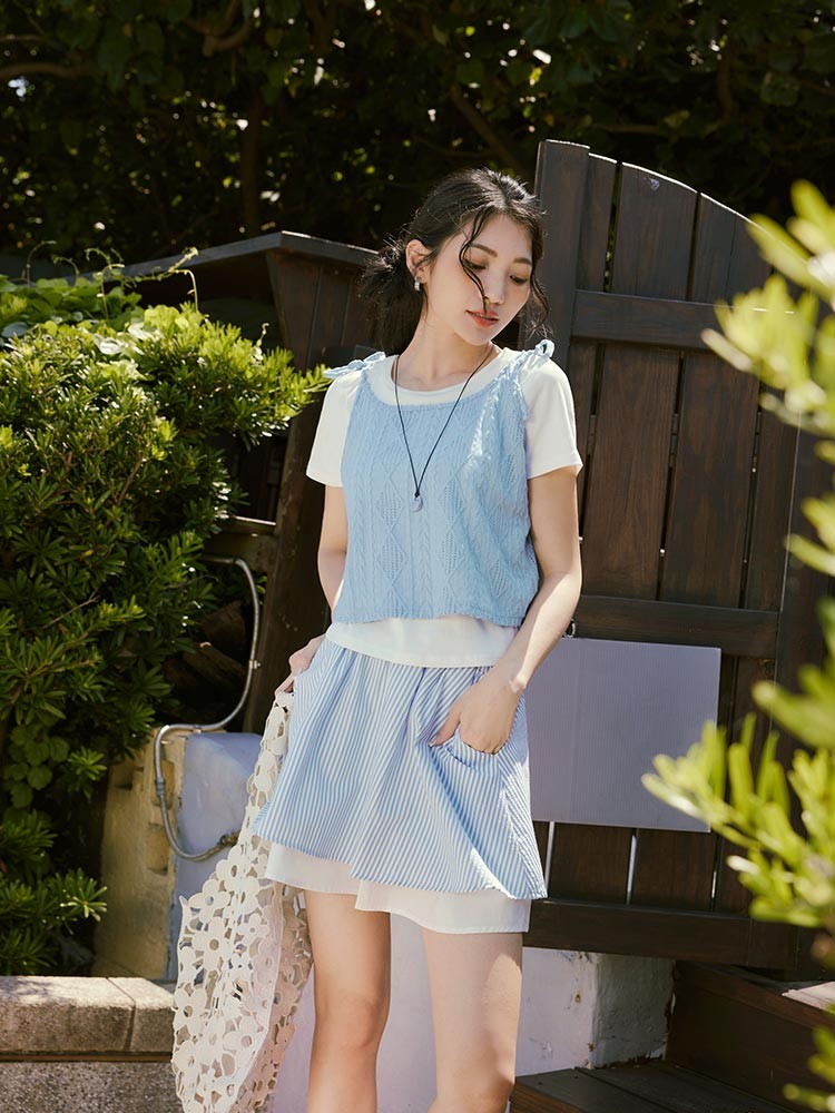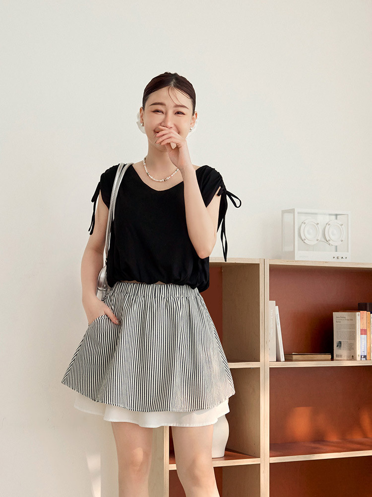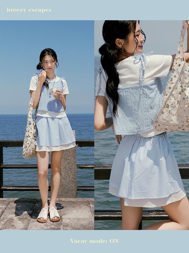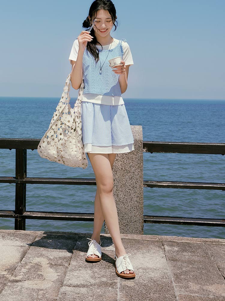 OB嚴選 清新條紋雙層傘襬短裙 《CA3125》深灰,S|深灰,M|深灰,L|深灰,XL|深灰,2L|深灰,3L|霧藍,S|霧藍,M|霧藍,L|霧藍,XL|霧藍,2L|霧藍,3LOB嚴選官方旗艦店