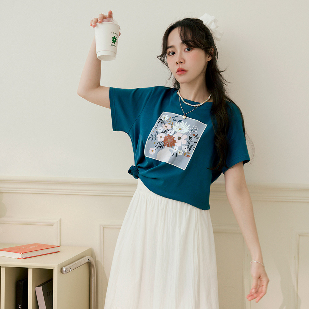 OB嚴選 棉質手繪花瓶印花短袖上衣 《AB20400》大尺碼/女裝/現貨灰白,S|灰白,M|灰白,L|灰白,XL|灰白,2L|灰白,3L|深藍,S|深藍,M|深藍,L|深藍,XL|深藍,2L|深藍,3LT-shirtsOB嚴選官方旗艦店