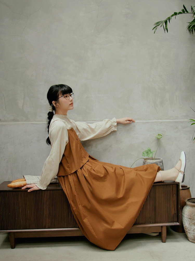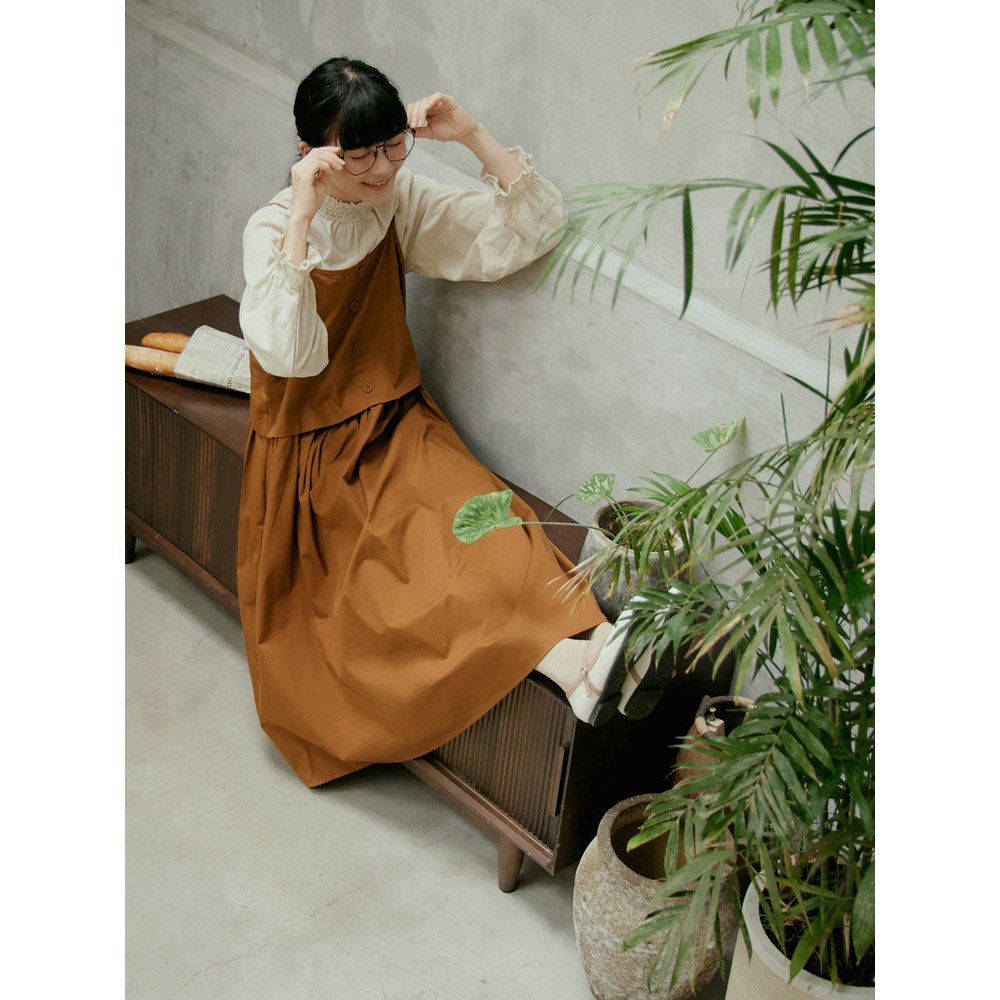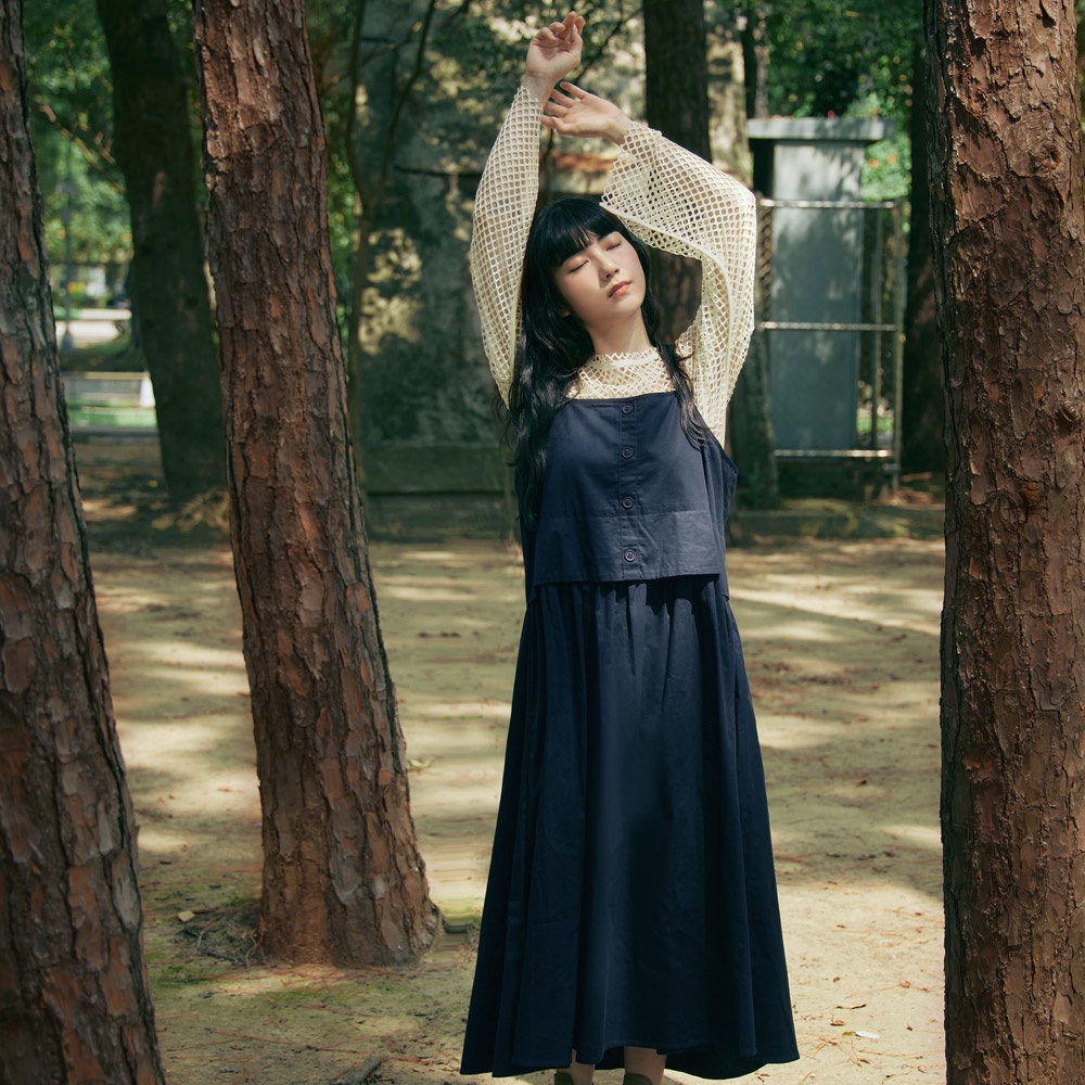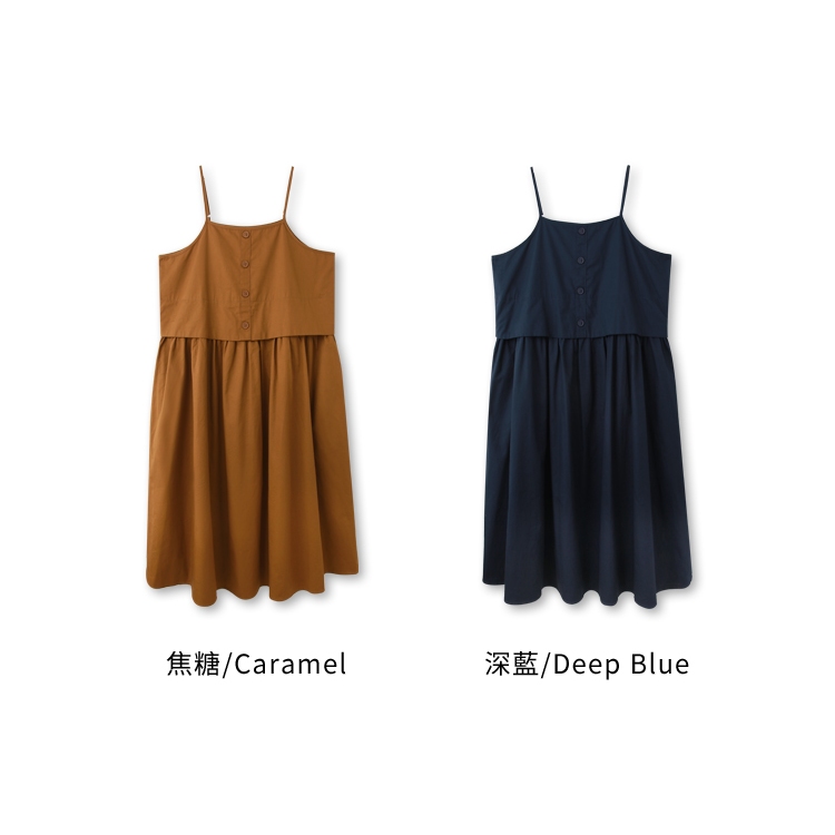 OB嚴選 純棉寬鬆假排釦造型可調式細肩洋裝 《DA9913》日系/大尺碼/現貨/女裝深藍,M|深藍,L|深藍,XL|深藍,2L|深藍,3L|焦糖,M|焦糖,L|焦糖,XL|焦糖,2L|焦糖,3LOB嚴選官方旗艦店