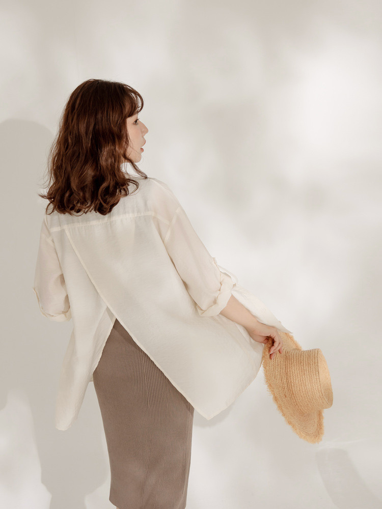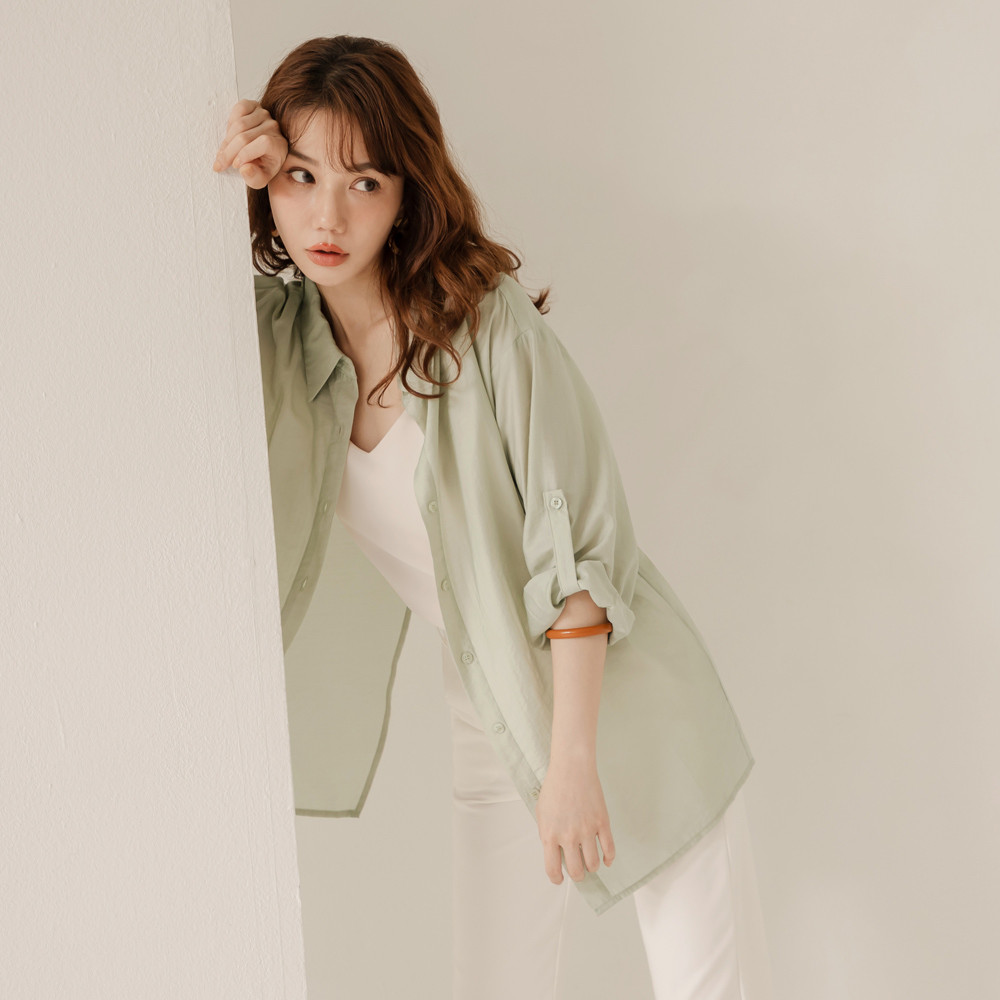 OB嚴選 細緻柔軟後開衩長袖長版襯衫 《AB19329》象牙白,S|象牙白,M|象牙白,L|象牙白,XL|象牙白,2L|象牙白,3L|灰綠,S|灰綠,M|灰綠,L|灰綠,XL|灰綠,2L|灰綠,3LT-shirtsOB嚴選官方旗艦店