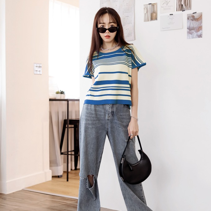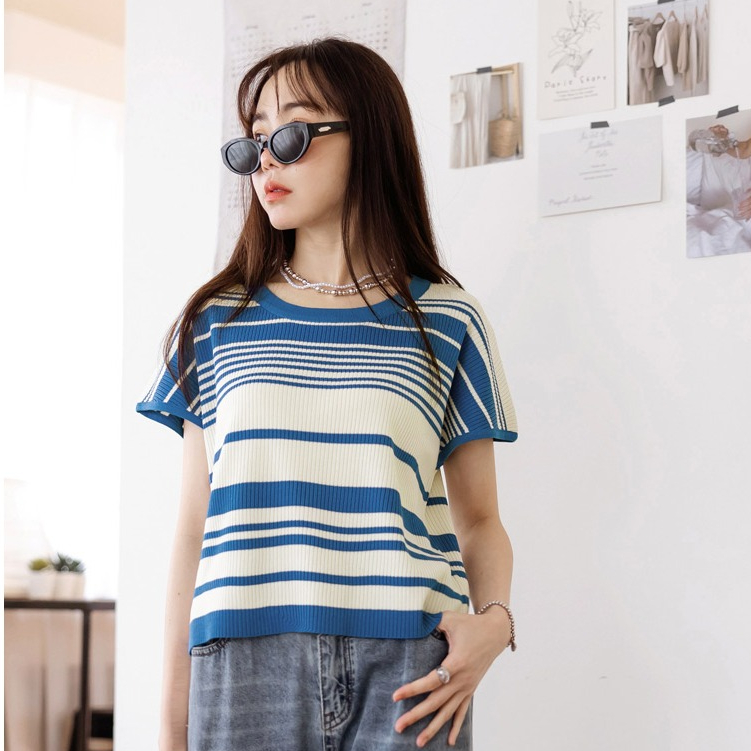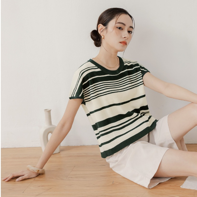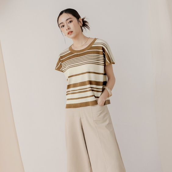 OB嚴選 圓領條紋針織落肩短袖上衣 《FA2928》大尺碼/現貨/女裝褐,M|褐,L|褐,XL|褐,2L|橄欖綠,M|橄欖綠,L|橄欖綠,XL|橄欖綠,2L|黑,M|黑,L|黑,XL|黑,2L|鮮藍,M|鮮藍,L|鮮藍,XL|鮮藍,2LOB嚴選官方旗艦店