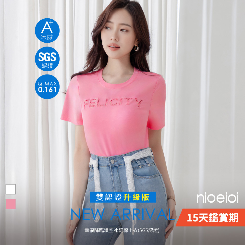 niceioi 涼感上衣 短袖 摟空上衣 粉色 [幸福降臨鏤空冰瓷棉上衣] (SGS認證) 涼感t 女裝涼感上衣-白,M|涼感上衣-白,L|涼感上衣-白,XL|涼感上衣-粉,L|涼感上衣-粉,XL|涼感上衣-白,S|涼感上衣-粉,S|涼感上衣-粉,MT-shirtsniceioi 官方旗艦店