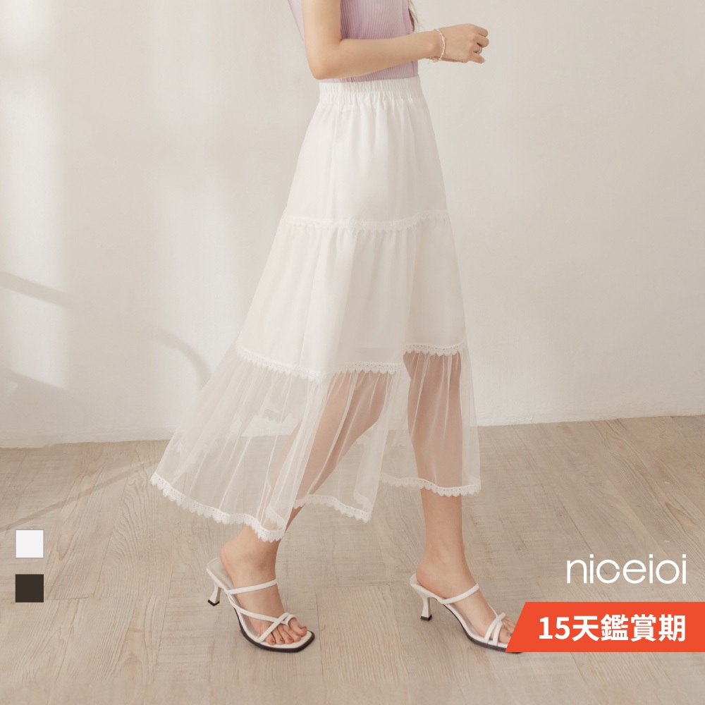 niceioi【特惠】若隱若現層次蛋糕長裙 (共2色) 女裝白,F|黑,Fniceioi 官方旗艦店