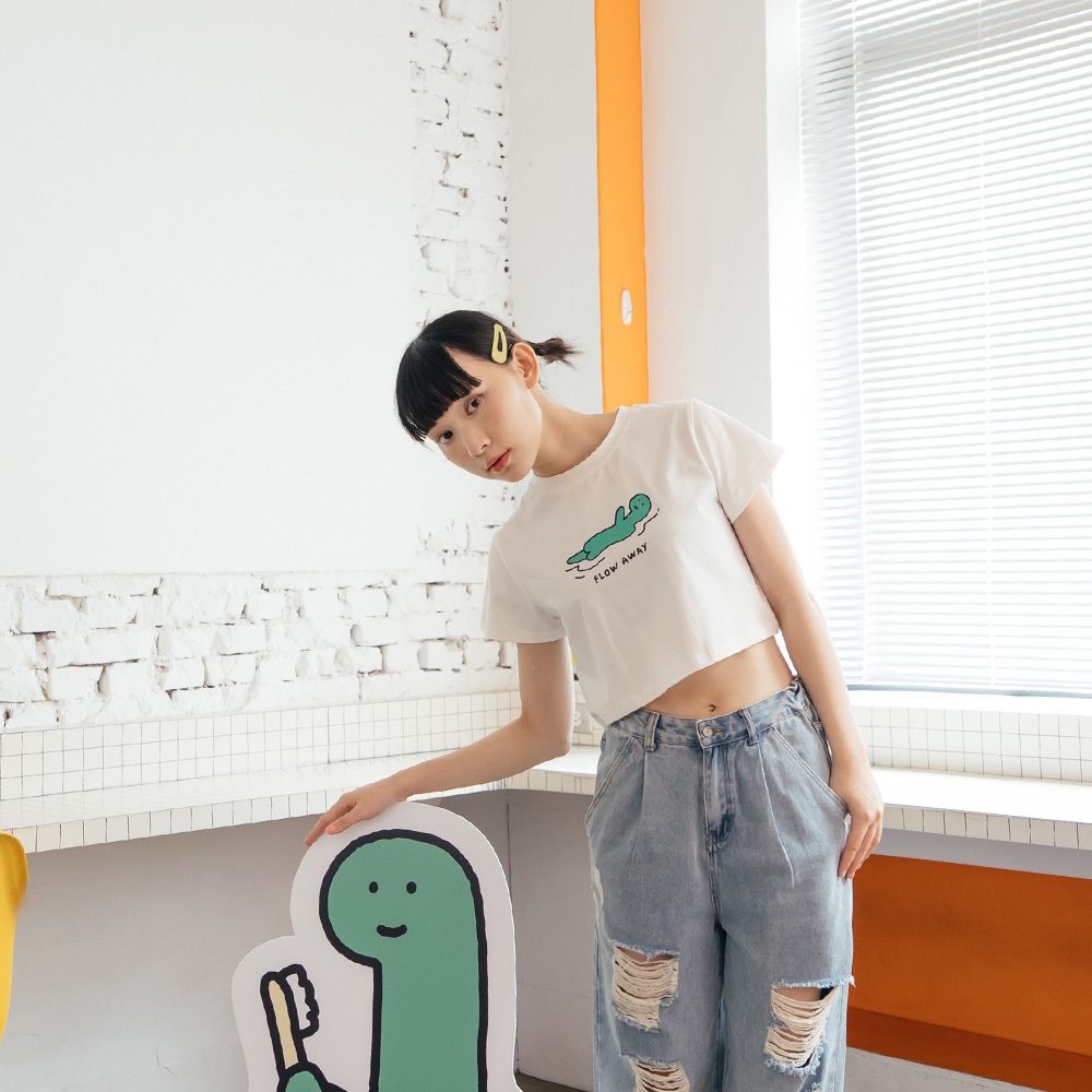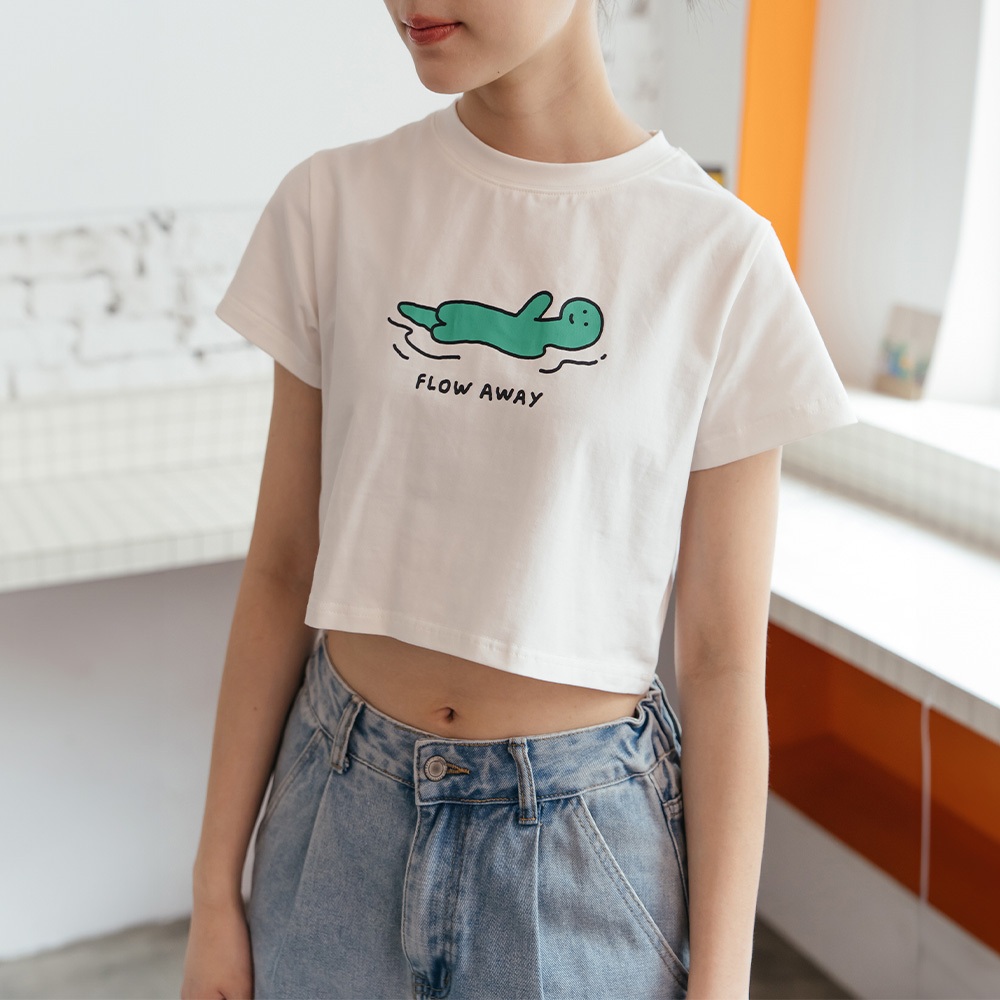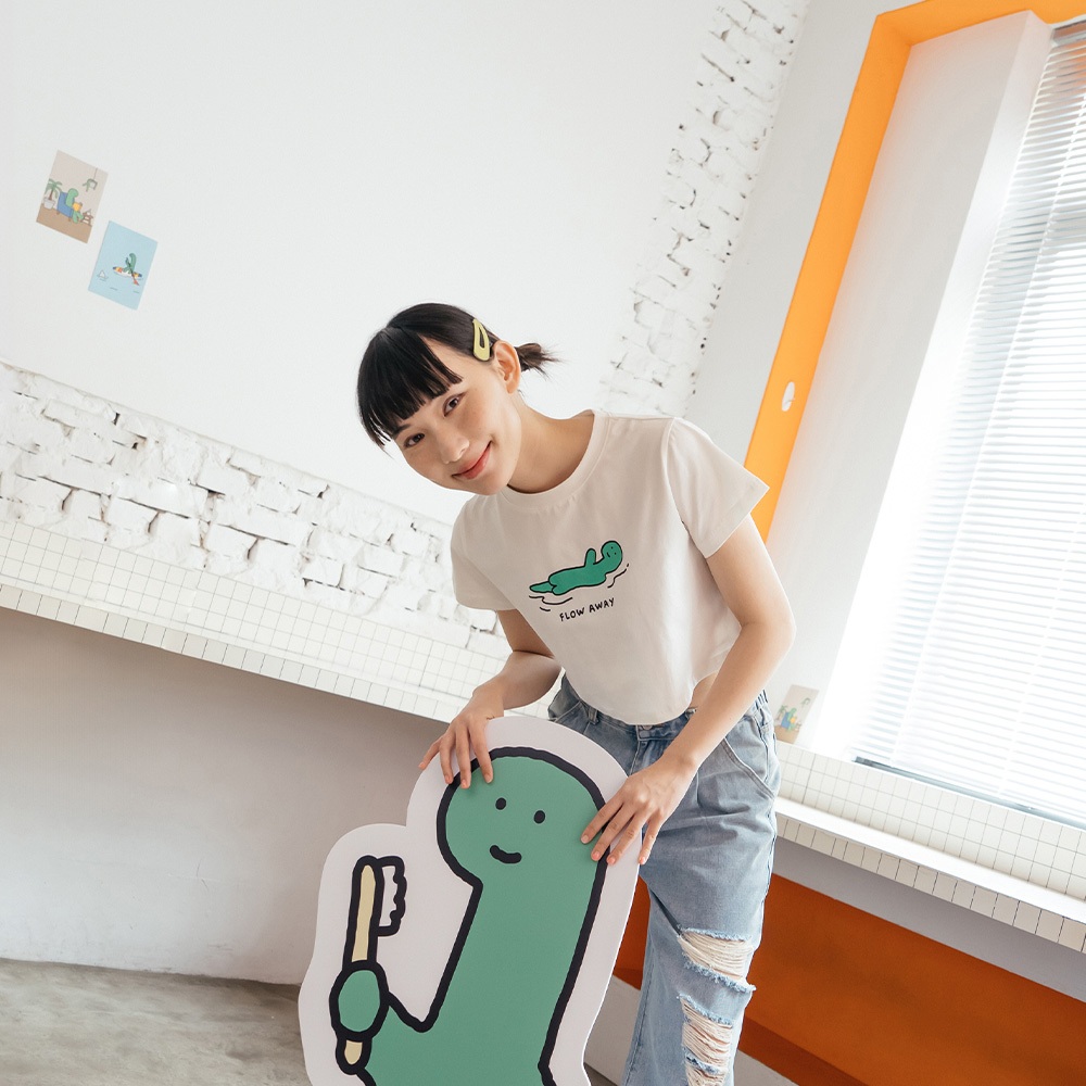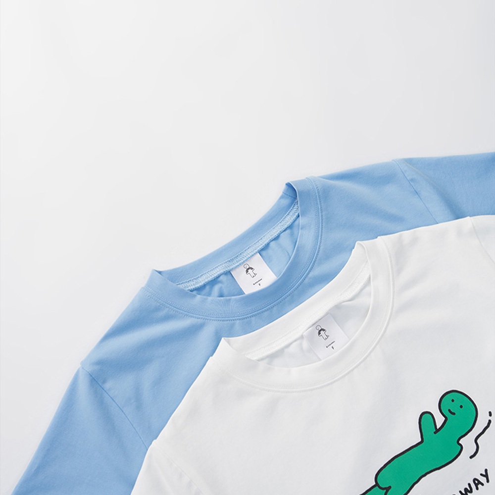 QUEENSHOP_ S 女裝 短袖 JOGUMAN 漂浮上衣 兩色售 現+預 【01099179】藍|米白T-shirtsQUEENSHOP