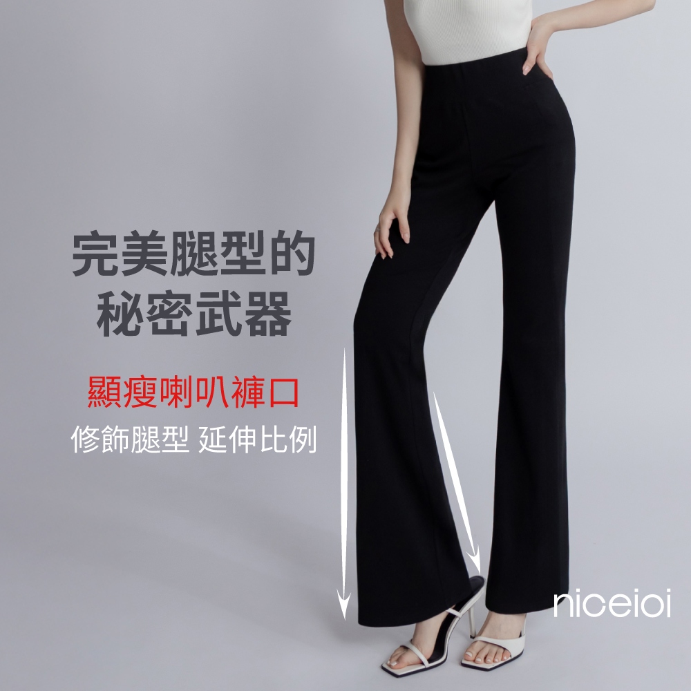 niceioi 喇叭褲 長褲 修身長褲 黑色 [美圖系列 長腿菁英高腰美型羅馬布喇叭褲] 超值推薦 大尺碼女裝喇叭褲-黑色,S|喇叭褲-黑色,L|喇叭褲-黑色,M|喇叭褲-黑色,XL|喇叭褲-黑色,XXLPantsniceioi 官方旗艦店
