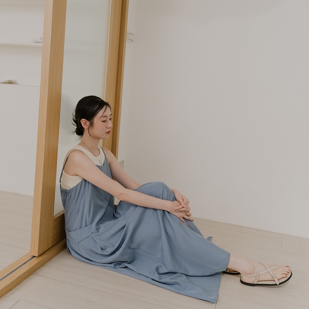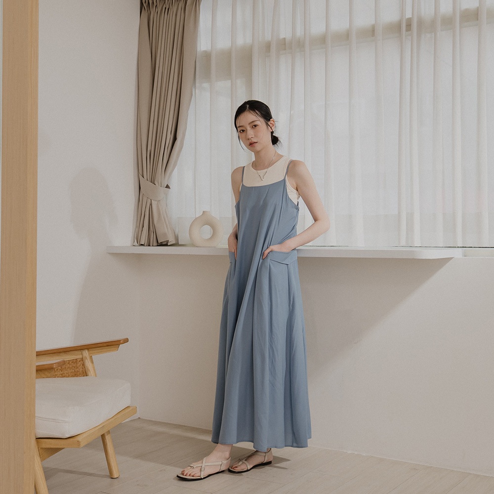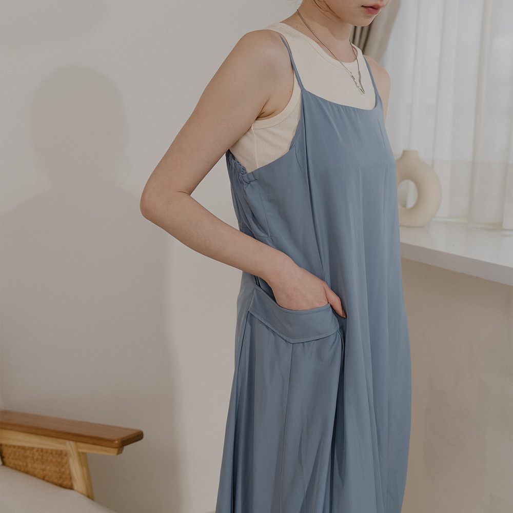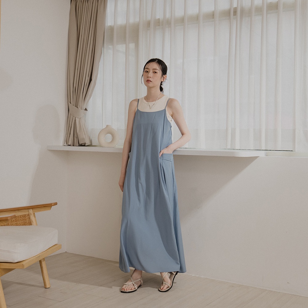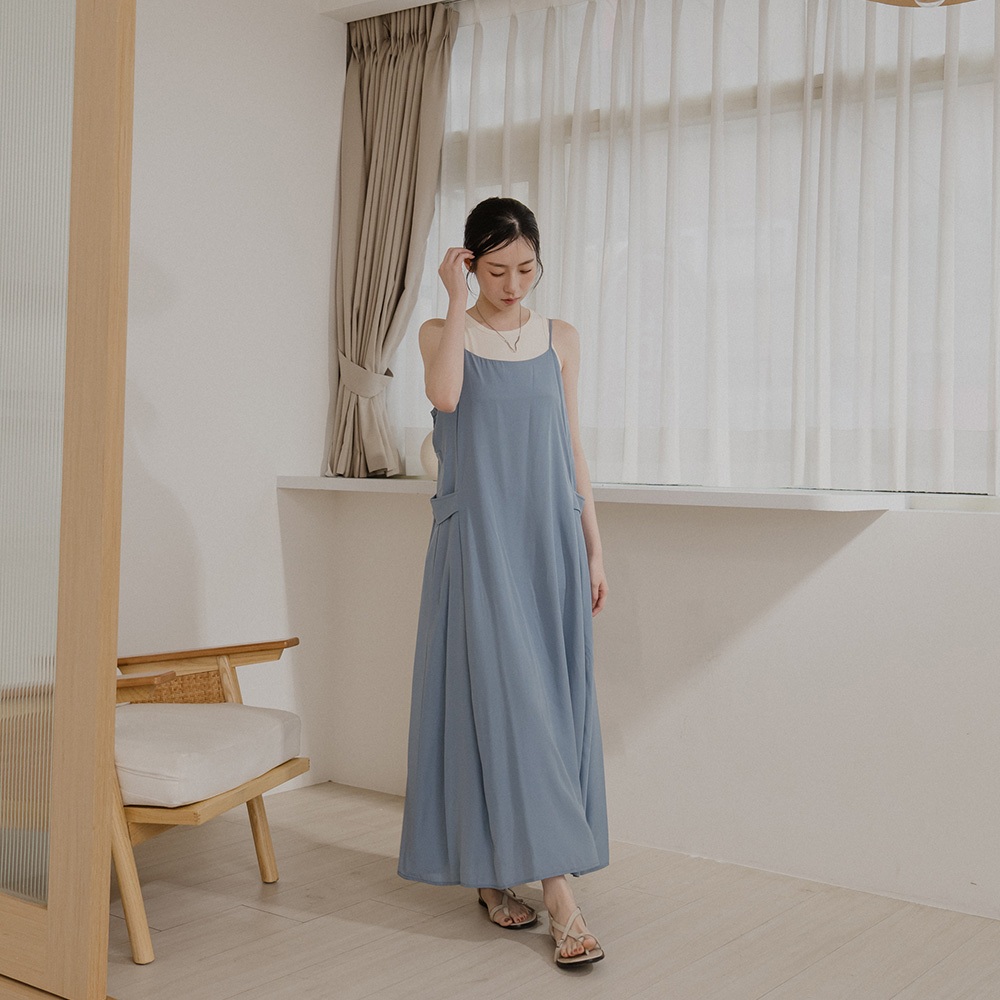 QUEENSHOP_ S 女裝 簡約大口袋細肩帶長洋裝-藍 現+預 【01087095】藍QUEENSHOP
