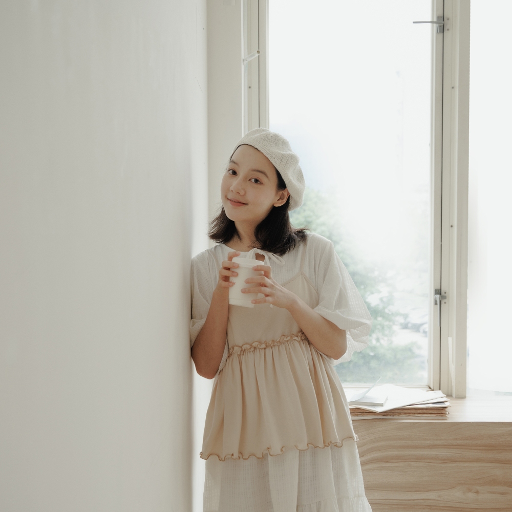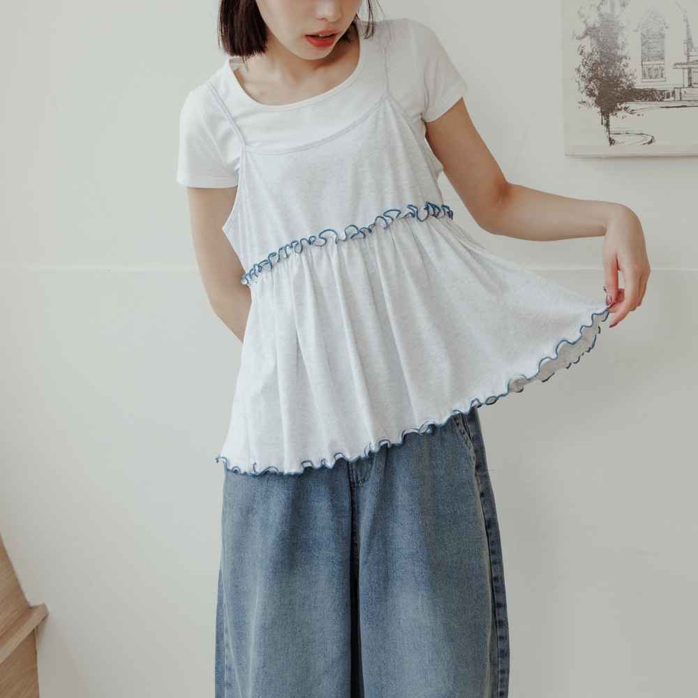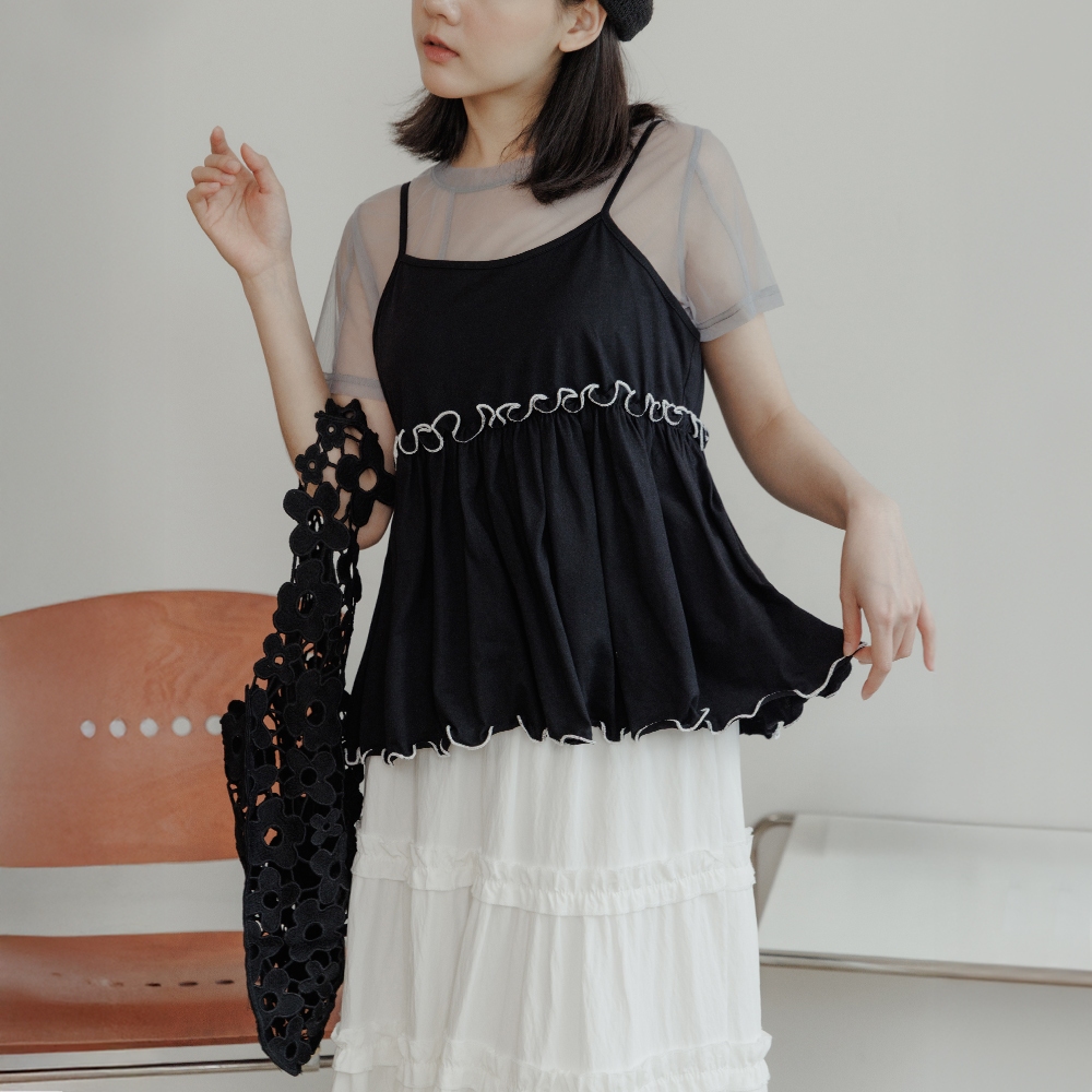 QUEENSHOP_ S 女裝 撞色木耳邊傘擺細肩罩衫背心 三色售 現+預 【01098902】黑|灰|杏Tanks & CamisolesQUEENSHOP