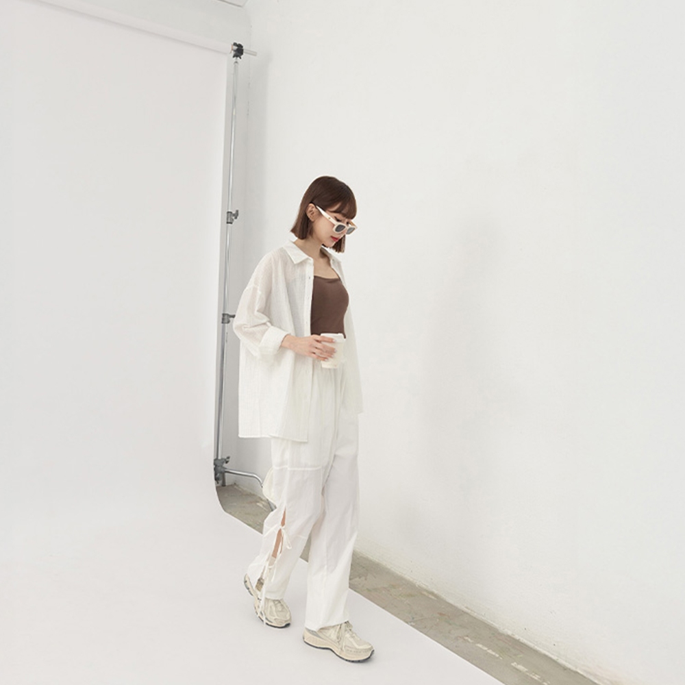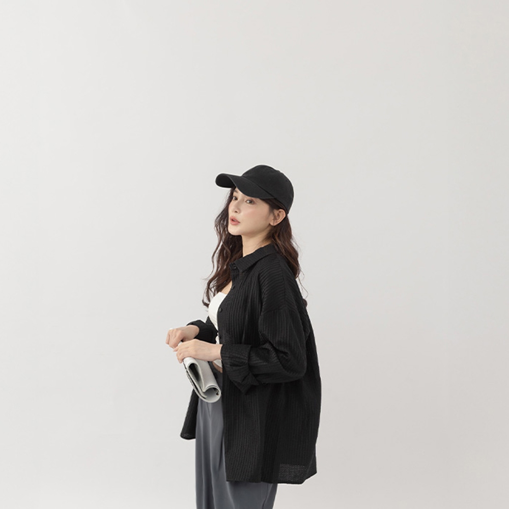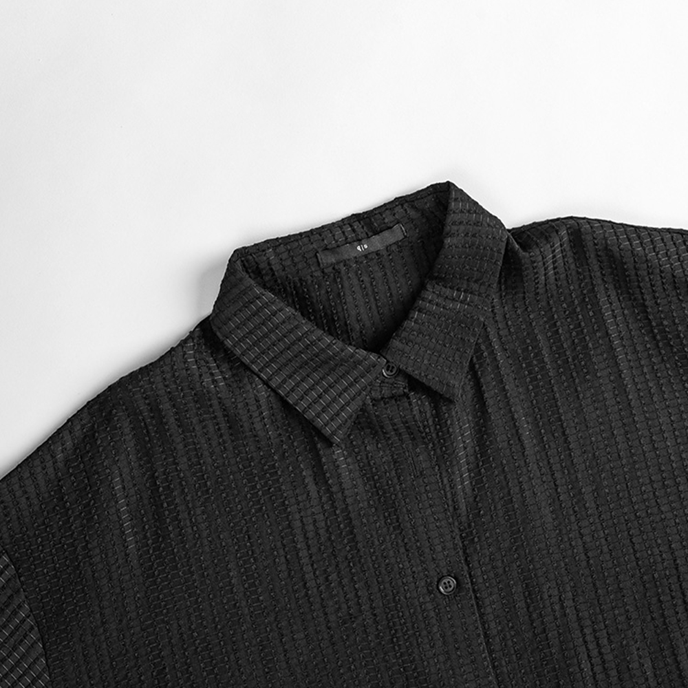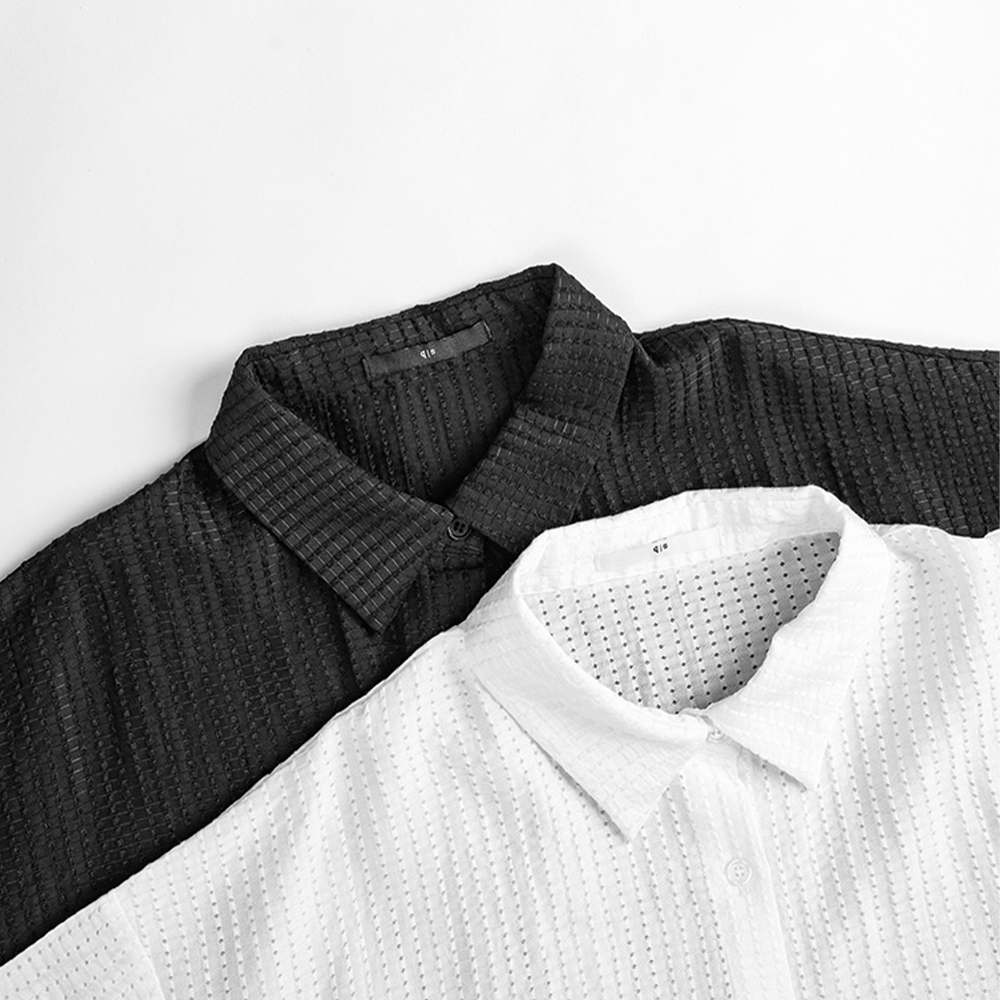 QUEENSHOP_ S 女裝 長袖 微透膚小格紋鏤空緹花襯衫 兩色售 現+預 【01025585】黑|白Shirts & BlousesQUEENSHOP
