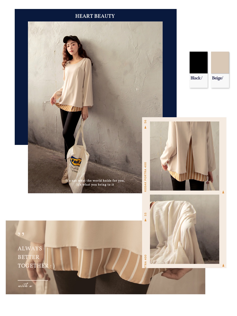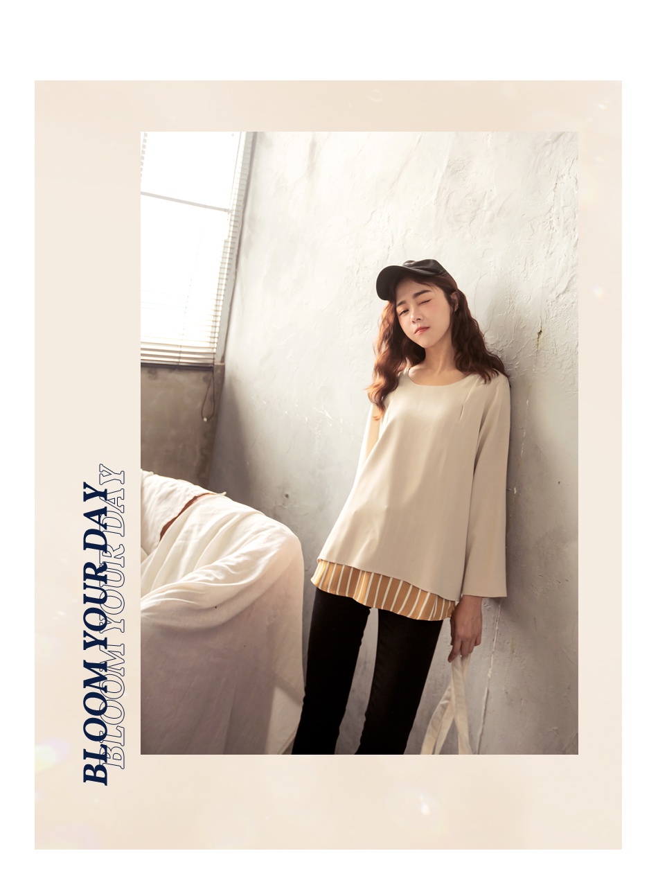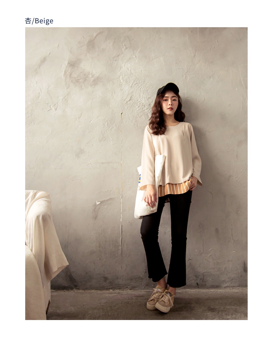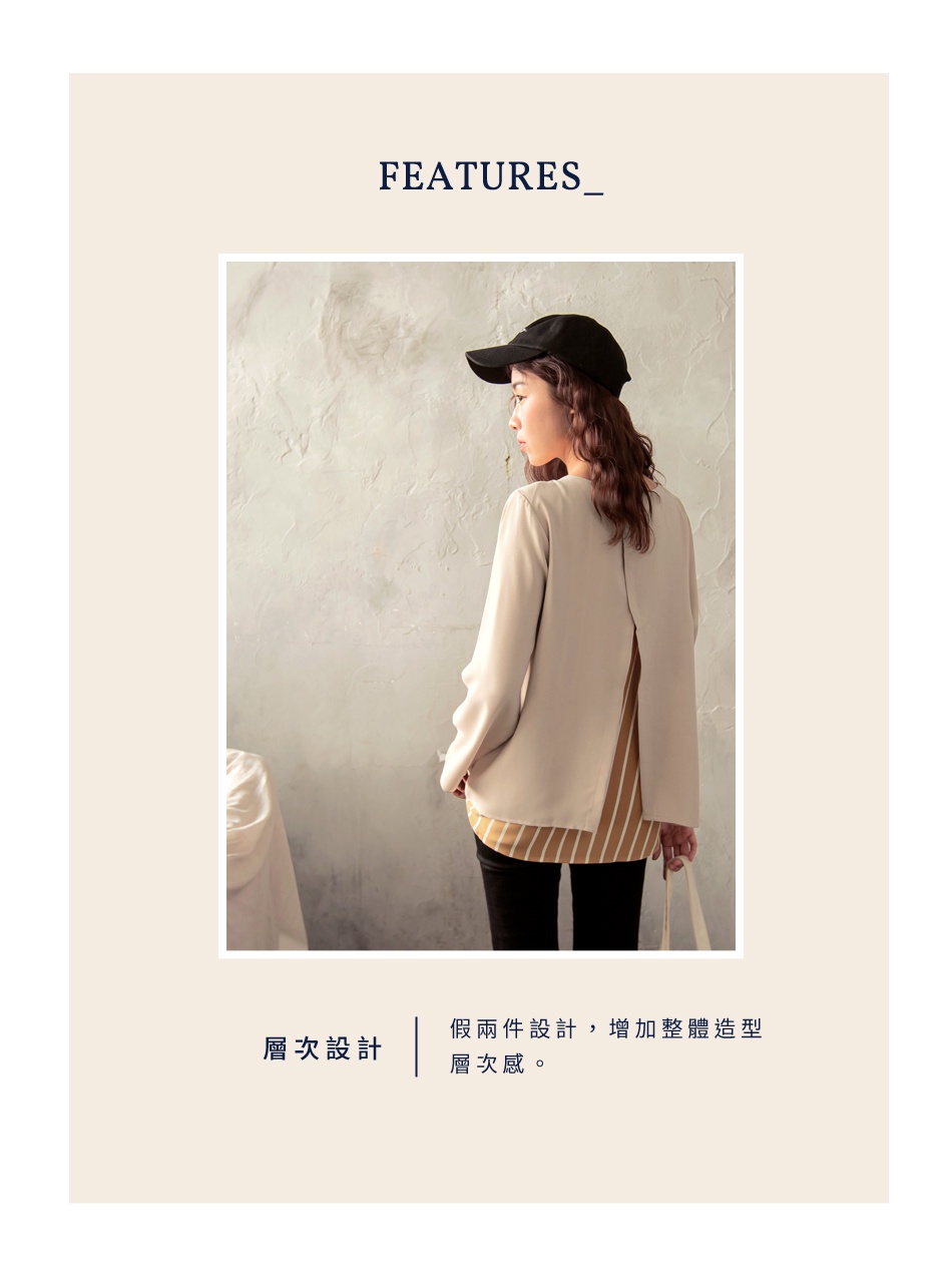 OB嚴選 假兩件條紋拼接後開衩長袖上衣 《AB13964》大尺碼/現貨/女裝杏,L|杏,XL|杏,2L|黑,XL|黑,2L|黑,3L|杏,S|杏,M|杏,3L|黑,S|黑,M|黑,LT-shirtsOB嚴選官方旗艦店