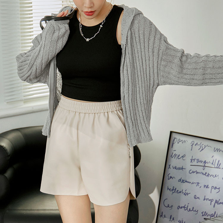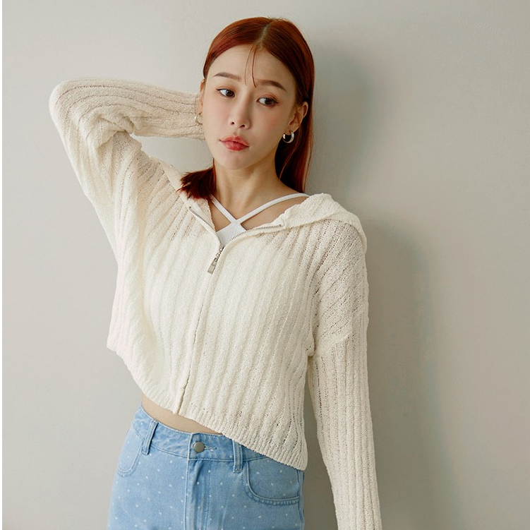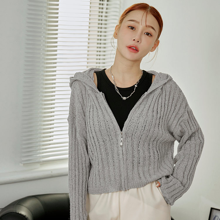 OB嚴選 短版坑條薄針織連帽外套 《FA3052》女裝/現貨象牙白,F|灰,F|黑,FOB嚴選官方旗艦店