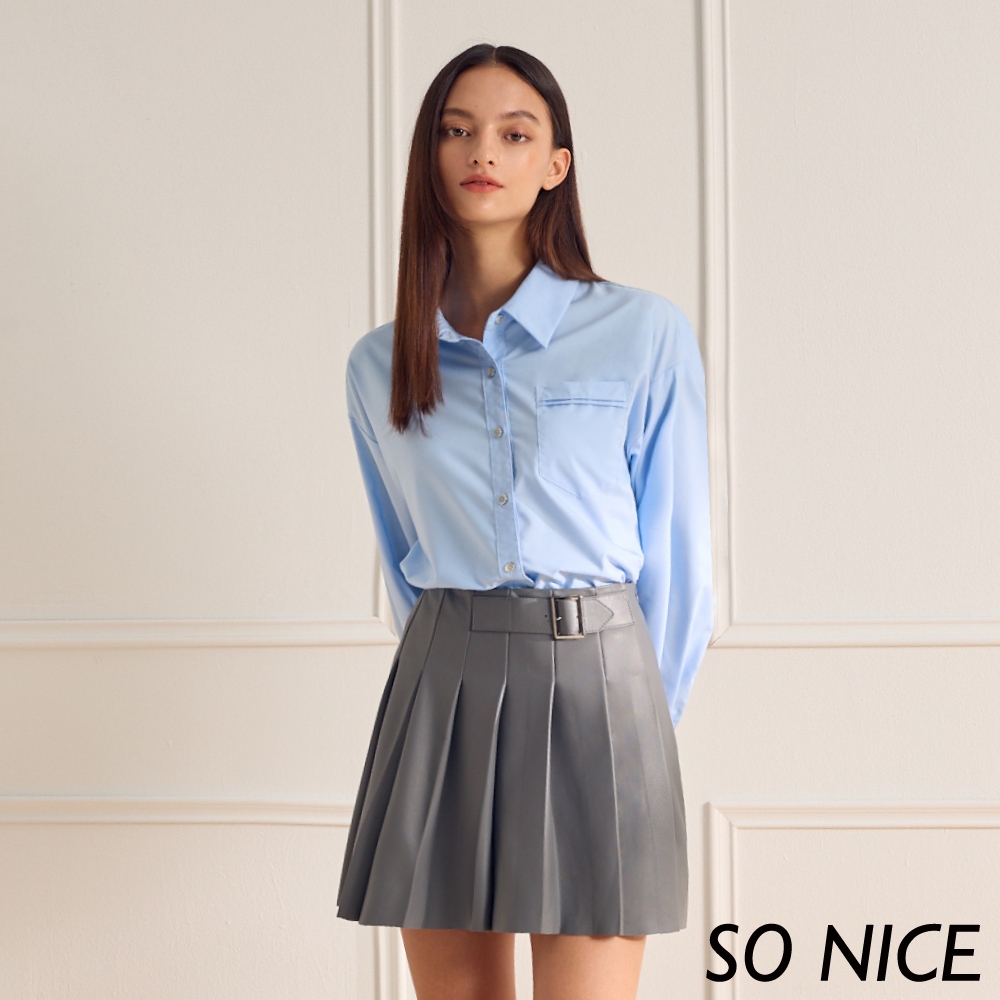 SO NICE【特惠】落肩連袖後收腰釦襯衫|都會時尚女裝 【73341006】