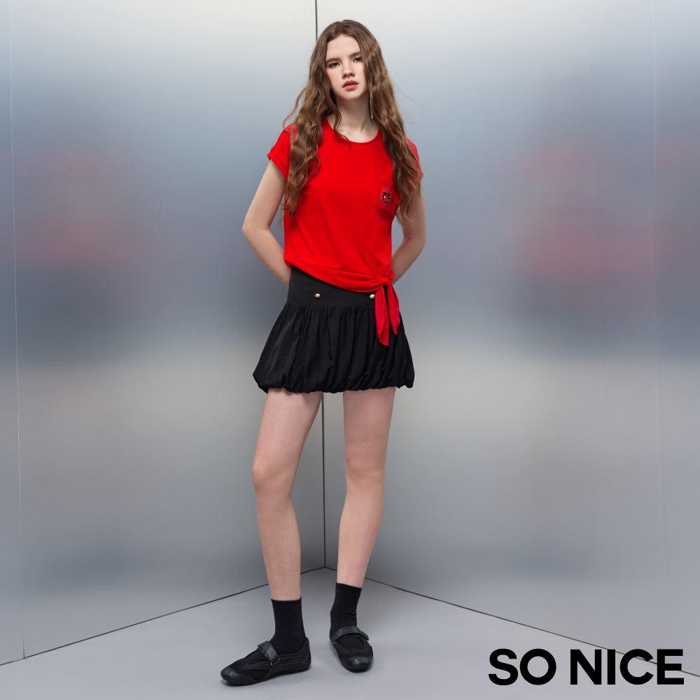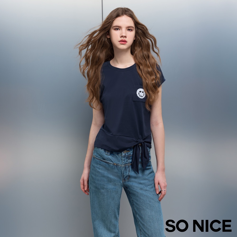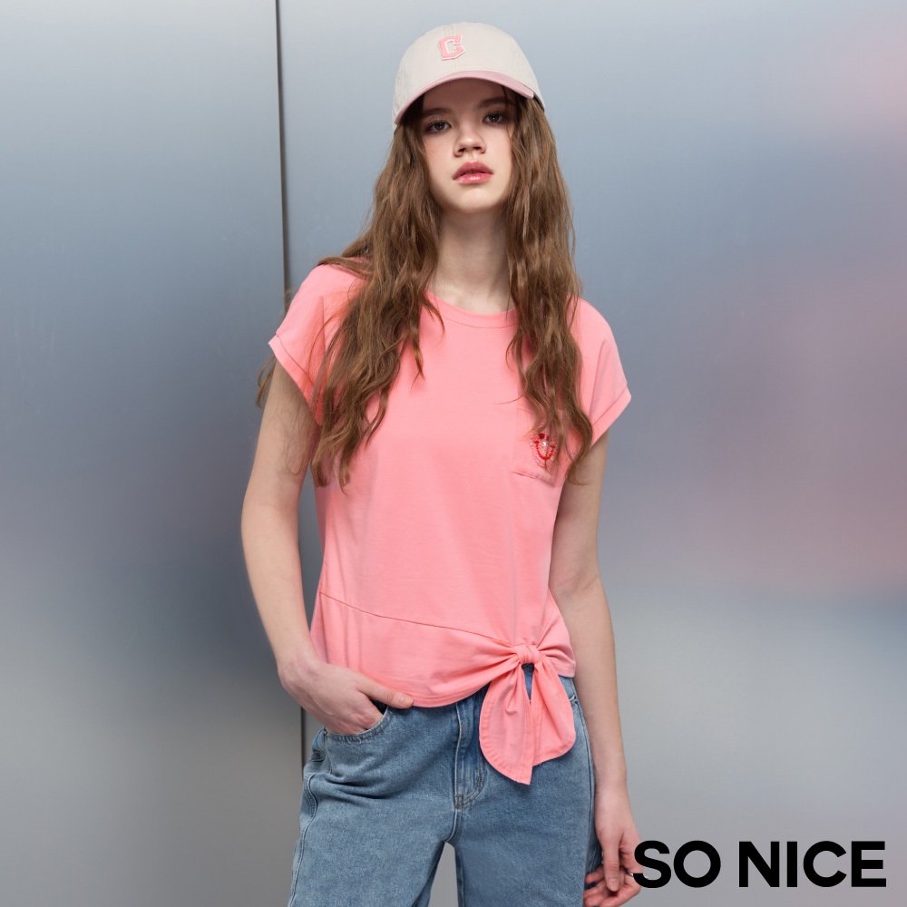 SO NICE【美白冰紗系列】笑臉口袋不對稱綁結造型修身輕盈彈力上衣|紅/粉/深藍|STAR|女裝【5853F017】紅,34(XS)|紅,40(L)|粉,36(S)|紅,36(S)|粉,38(M)|粉,40(L)|深藍,34(XS)|深藍,38(M)|紅,38(M)|紅,42(XL)|深藍,36(S)|粉,34(XS)|粉,42(XL)|深藍,40(L)|深藍,42(XL)T-shirtsSO NICE 官方旗艦店