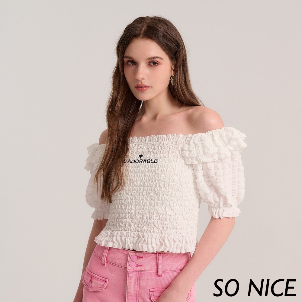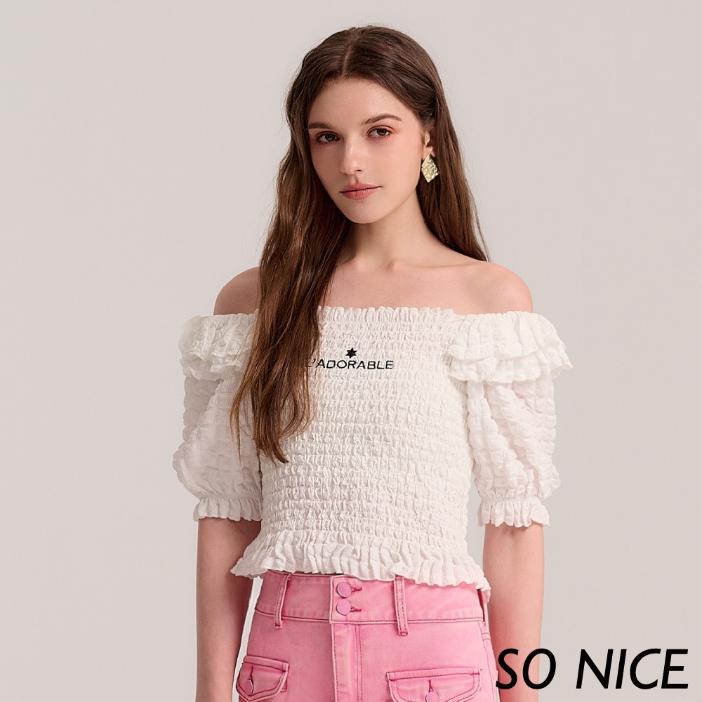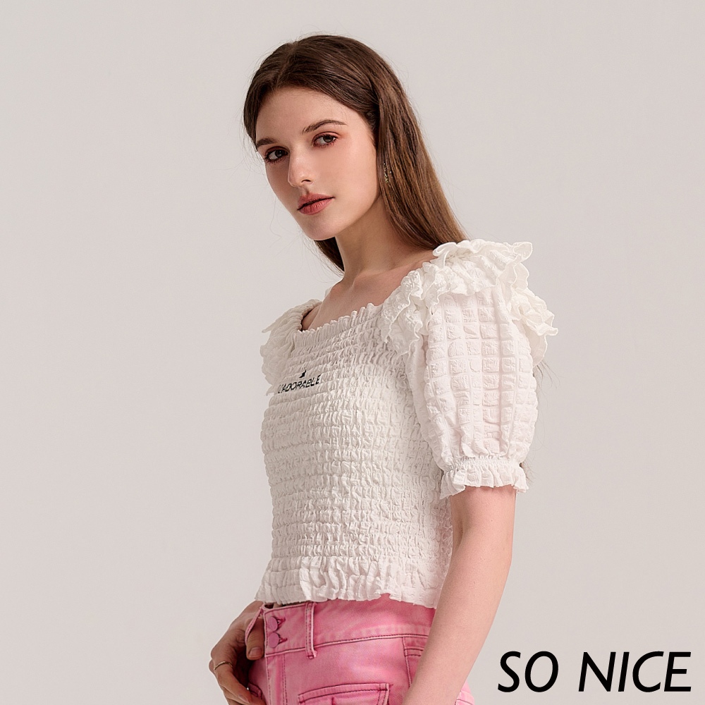 SO NICE【特惠】字母方領打攬荷葉袖立體泡泡布上衣|都會時尚女裝 【75431028】