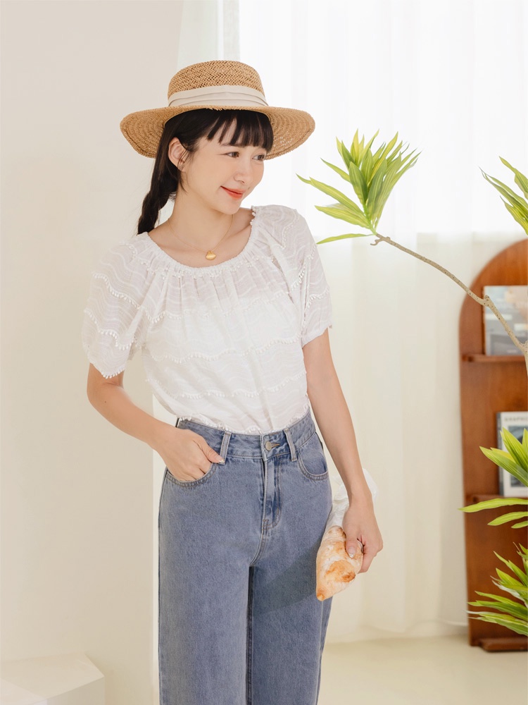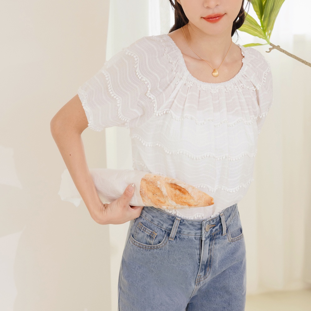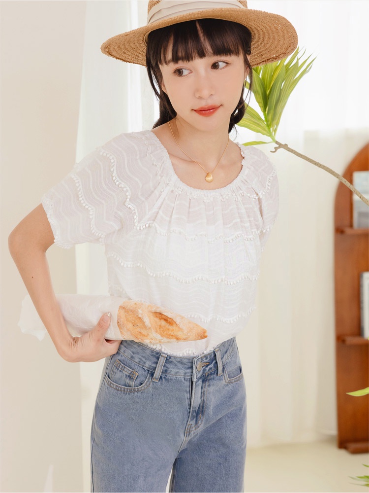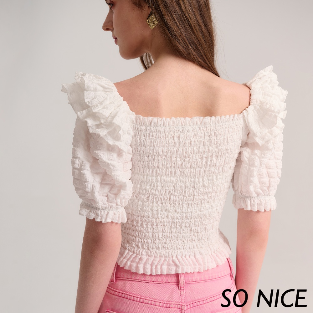 SO NICE【特惠】字母方領打攬荷葉袖立體泡泡布上衣|都會時尚女裝 【75431028】