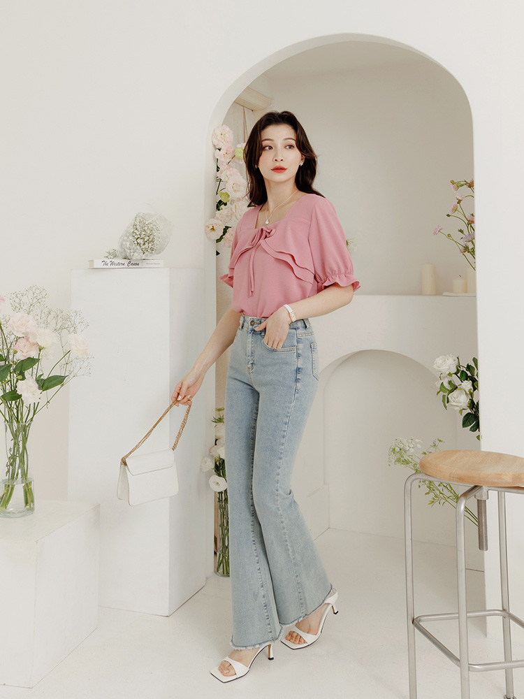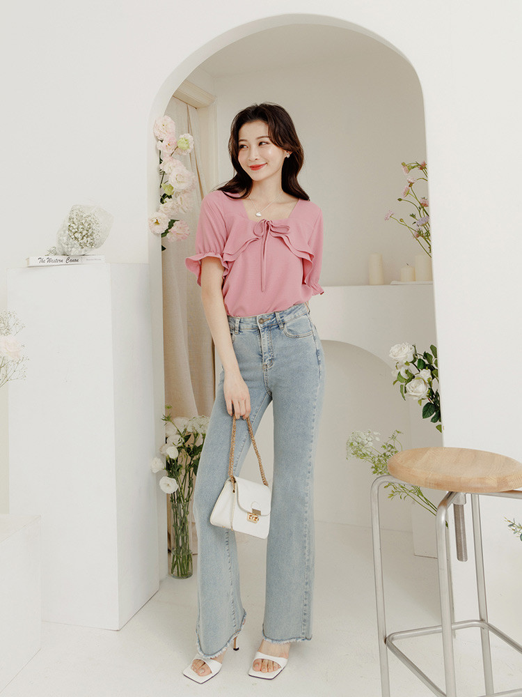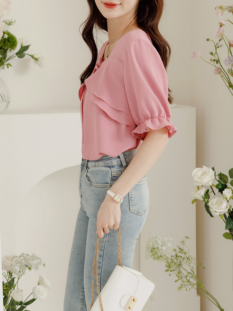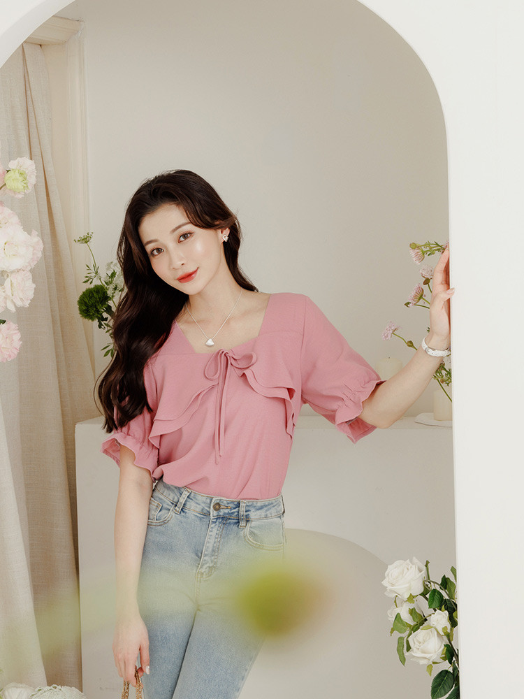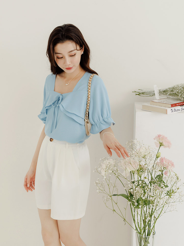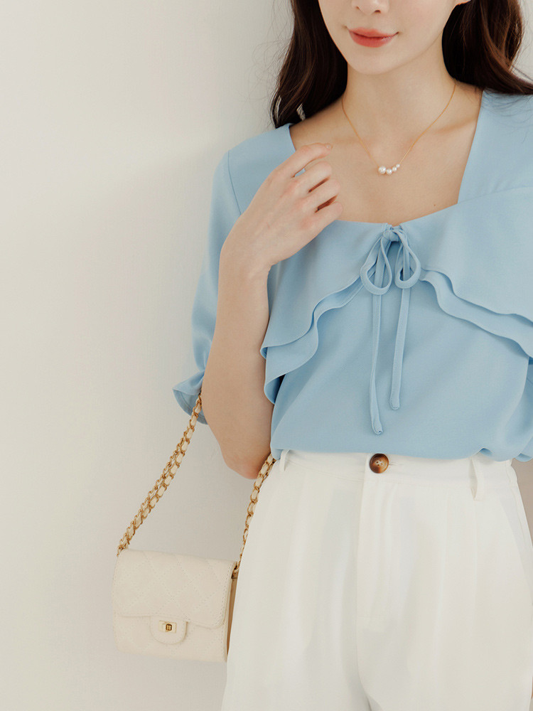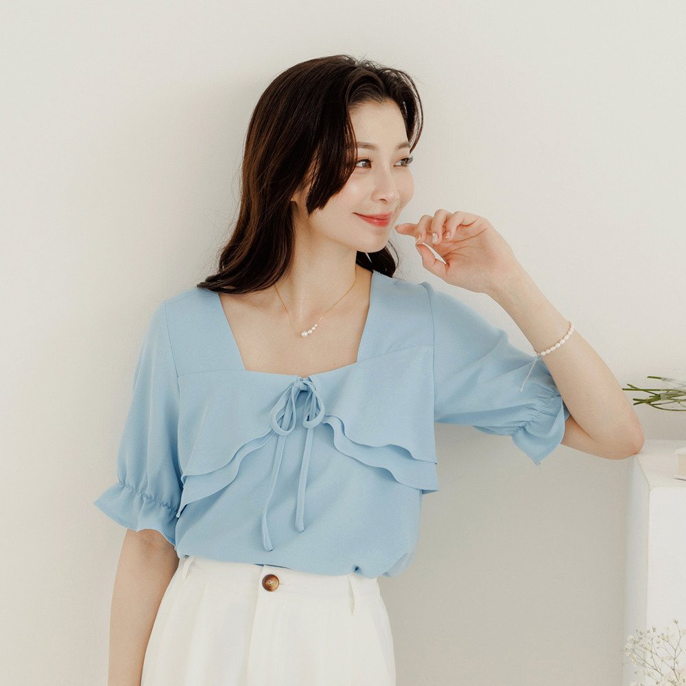OB嚴選 不易皺方領雙荷葉綁結短袖上衣 《AB19308》霧粉,S|霧粉,M|霧粉,L|霧粉,XL|霧粉,2L|霧粉,3L|淺水藍,S|淺水藍,M|淺水藍,L|淺水藍,XL|淺水藍,2L|淺水藍,3LT-shirtsOB嚴選官方旗艦店