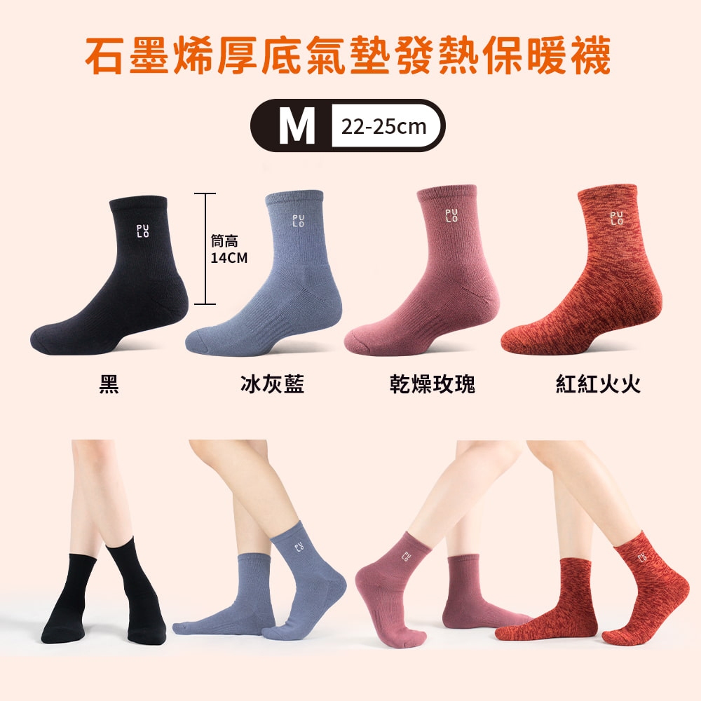 <滿3雙單雙179元>PULO-石墨烯厚底氣墊發熱保暖襪(M)厚底氣墊日本韓國玩雪薦-熱循環-禦寒神襪石墨烯襪發熱保暖襪煙燻粉-M|太空灰-M|冰灰藍-M|乾燥玫瑰-M|紅紅火火-M|黑-MSocksPULO布蘿襪館官方直營旗艦店|穿立淨除臭襪