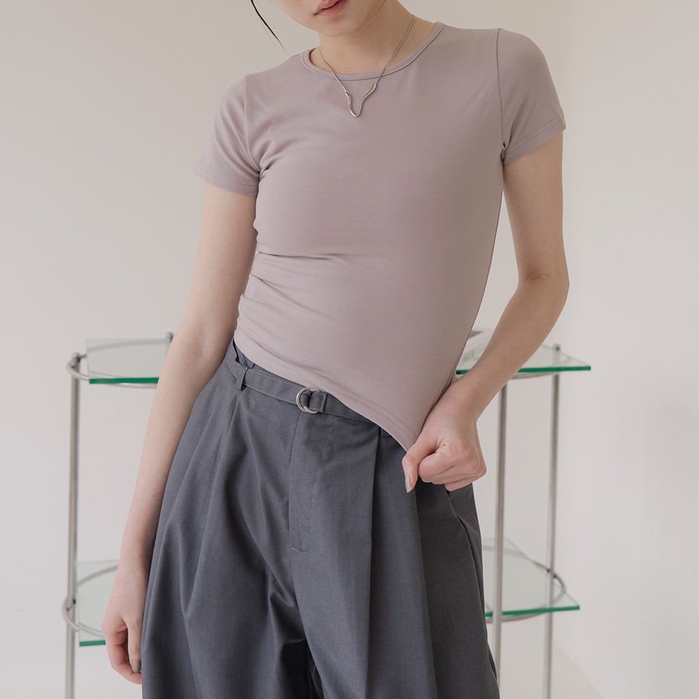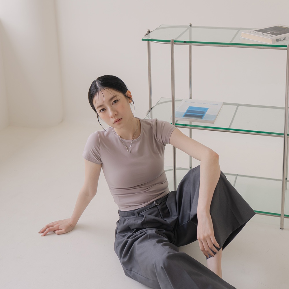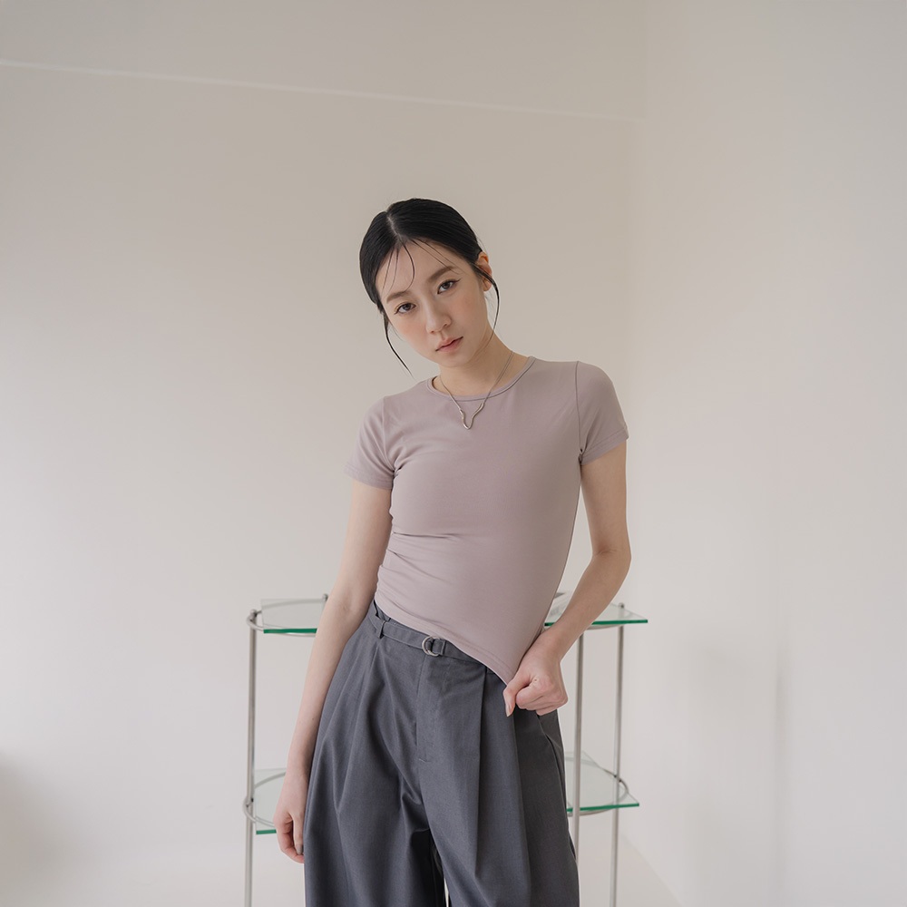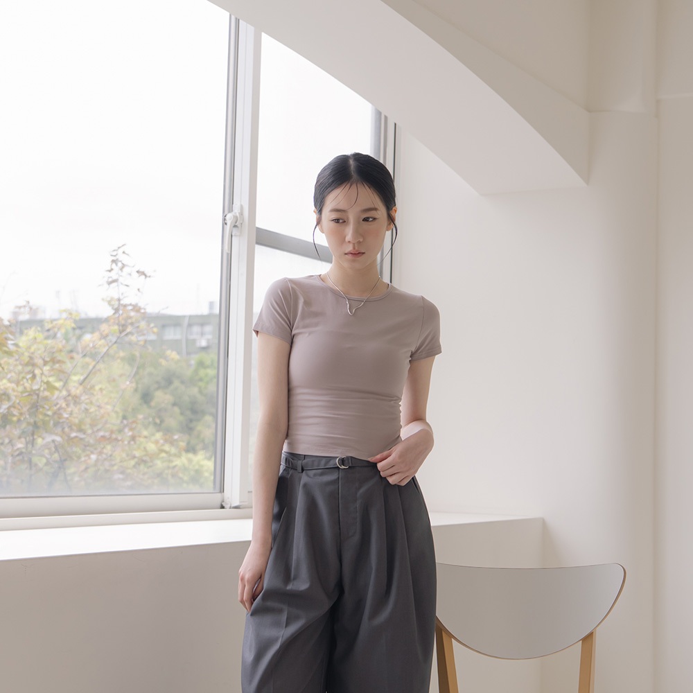 QUEENSHOP_ S 女裝 短袖 基本素面合身圓領純棉上衣-杏灰 S/M 現+預 【01098815】杏灰S|杏灰MT-shirtsQUEENSHOP