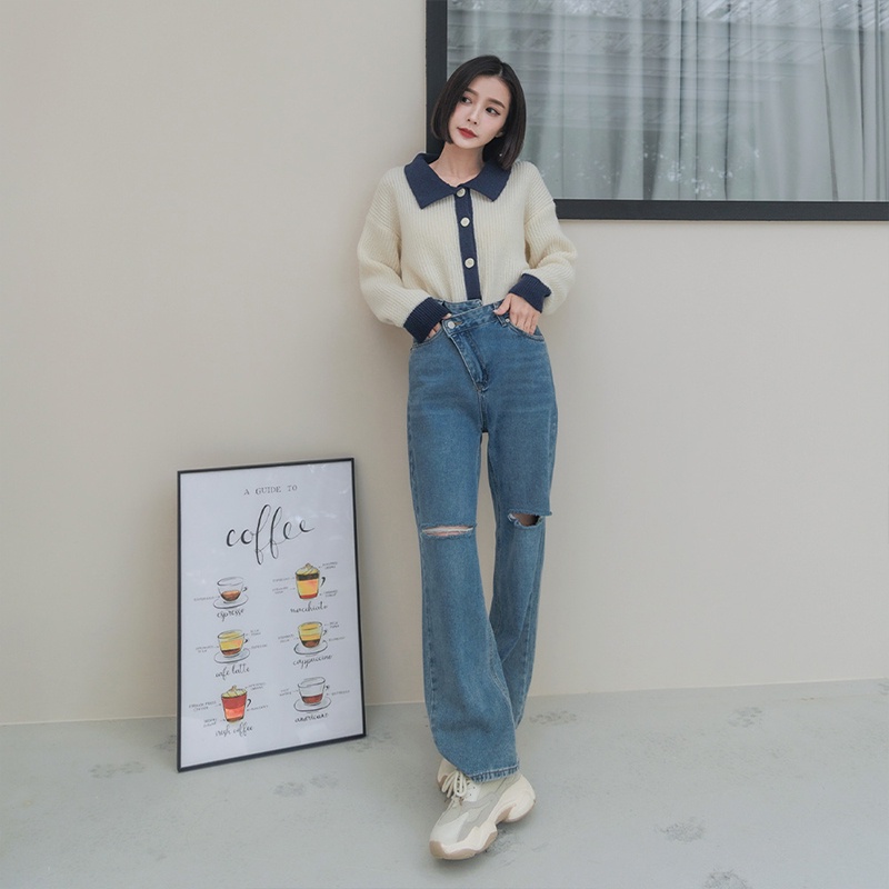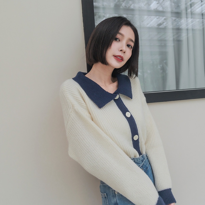 Space Picnic|拼色領排釦針織上衣-2色【C22101039】卡|白Space Picnic