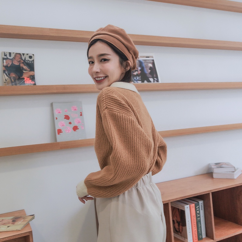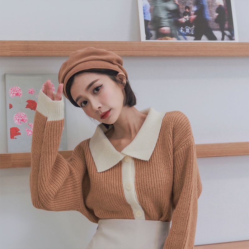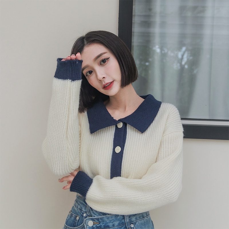Space Picnic|拼色領排釦針織上衣-2色【C22101039】