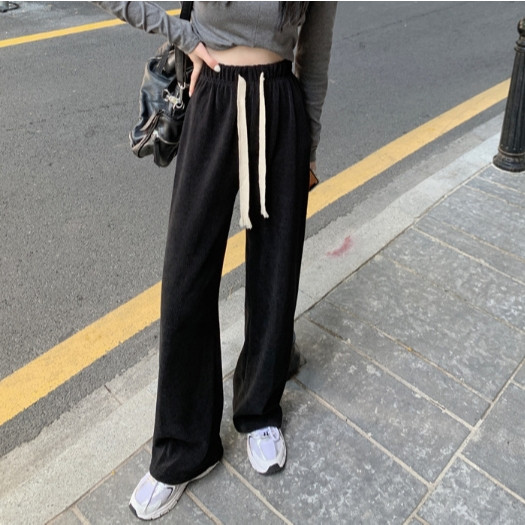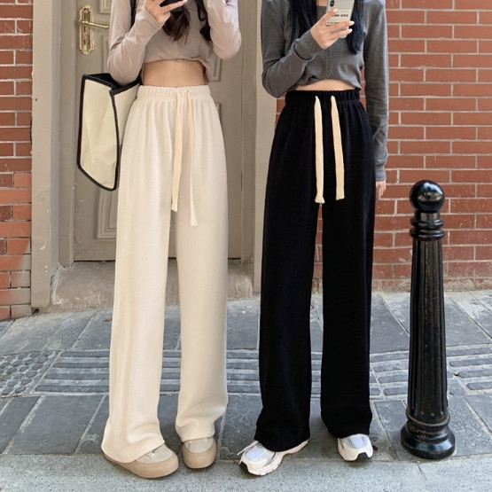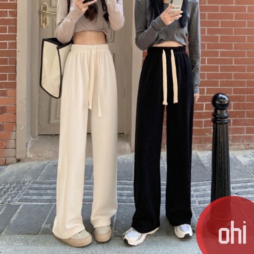 【ohi】韓版系帶高腰大碼闊腿拖地褲 慵懶寬鬆直筒運動休閒褲 運動褲 百搭休閒褲 女生直筒褲 XGP119黑色,M|黑色,L|黑色,XL|黑色,2XL|黑色,3XL|黑色,4XL|杏色,M|杏色,L|杏色,XL|杏色,2XL|杏色,3XL|杏色,4XLPantsOHI衣著