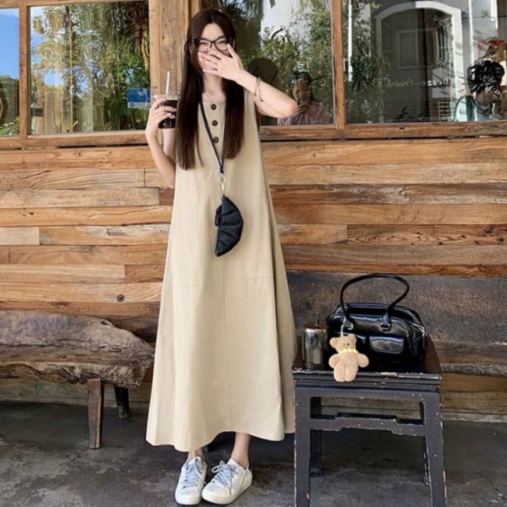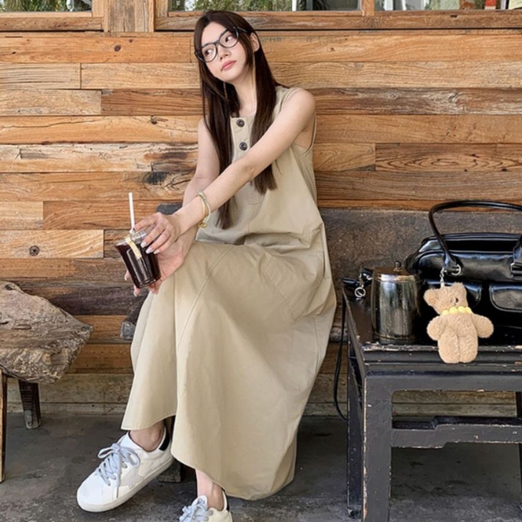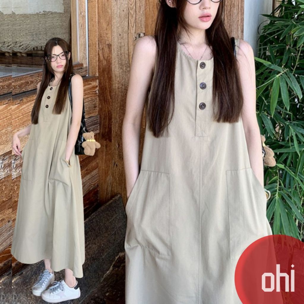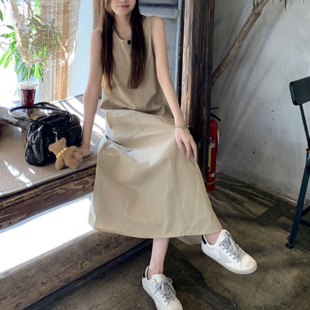 【ohi】無袖休閒寬鬆連身裙 氣質顯瘦 約會長裙 連身裙 長裙 中長款裙子 洋裝 連衣裙 女裝 GKD265圖片色(偏卡其),S|圖片色(偏卡其),M|圖片色(偏卡其),L|圖片色(偏卡其),XL|圖片色(偏卡其),2XLOHI衣著