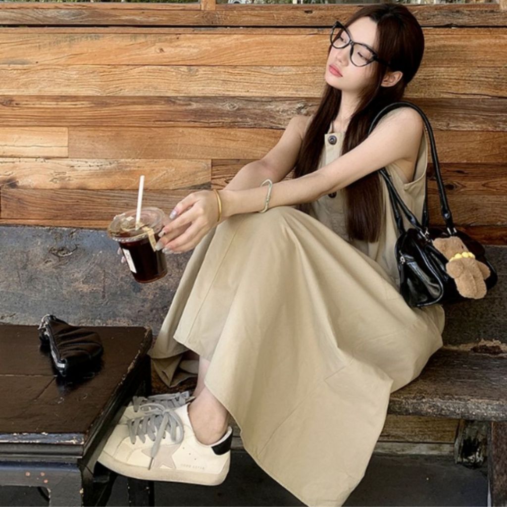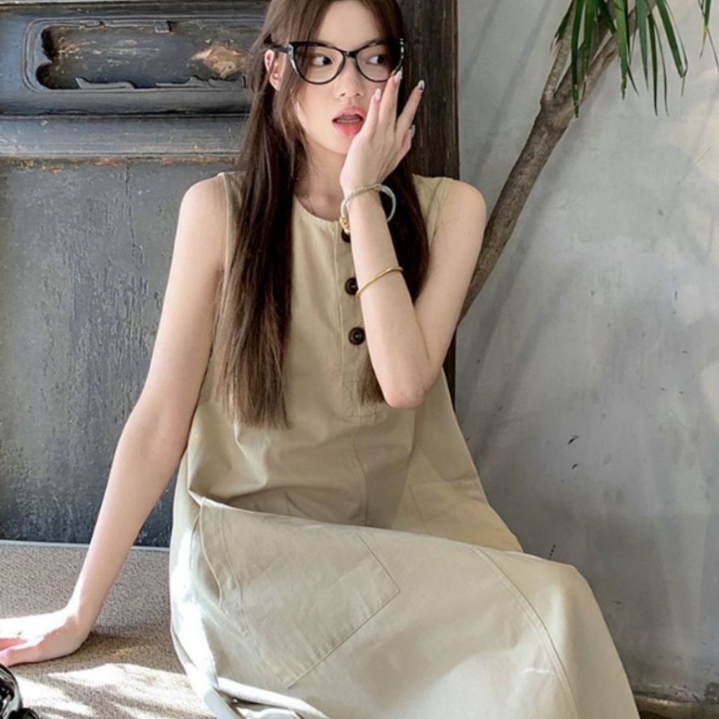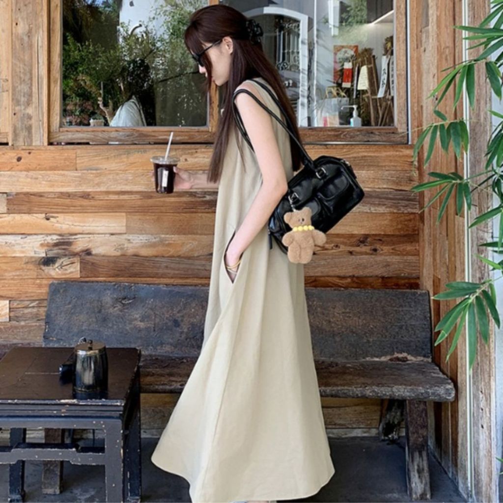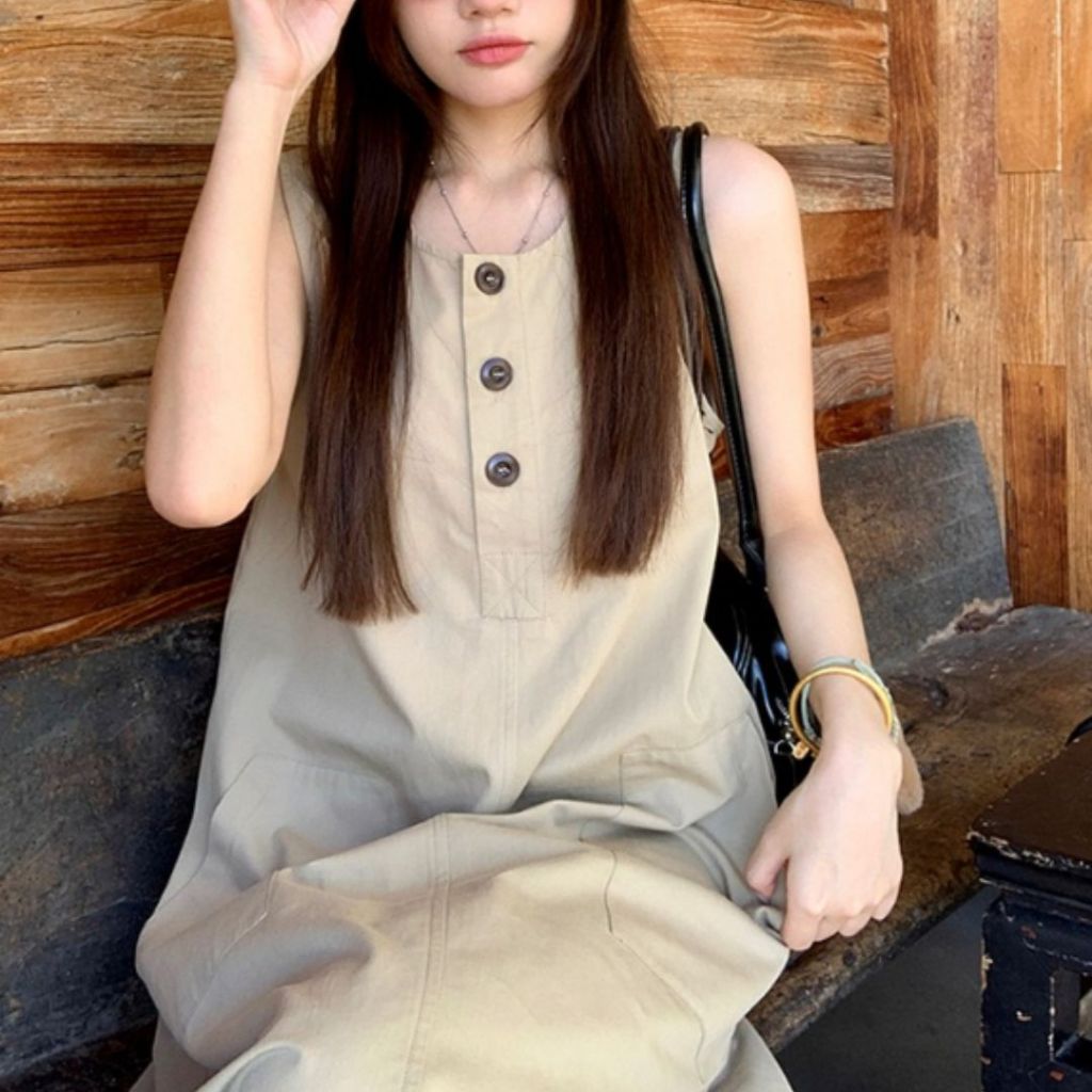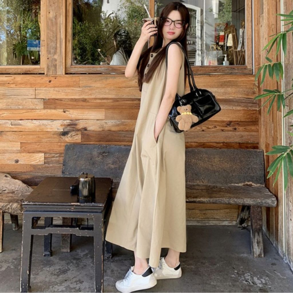 【ohi】無袖休閒寬鬆連身裙 氣質顯瘦 約會長裙 連身裙 長裙 中長款裙子 洋裝 連衣裙 女裝 GKD265圖片色(偏卡其),S|圖片色(偏卡其),M|圖片色(偏卡其),L|圖片色(偏卡其),XL|圖片色(偏卡其),2XLOHI衣著