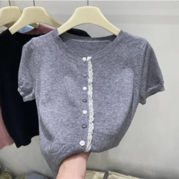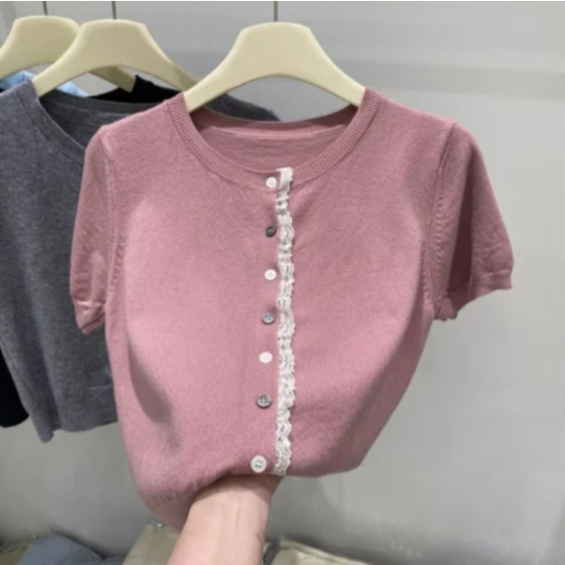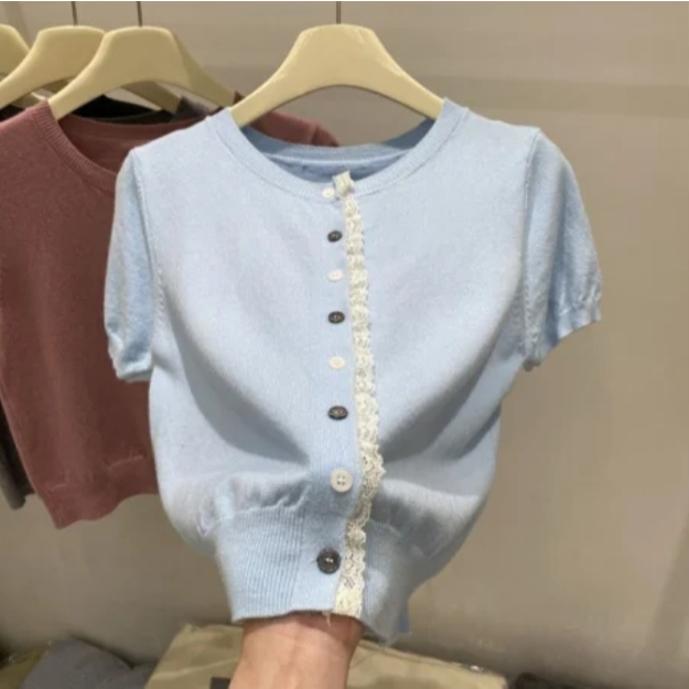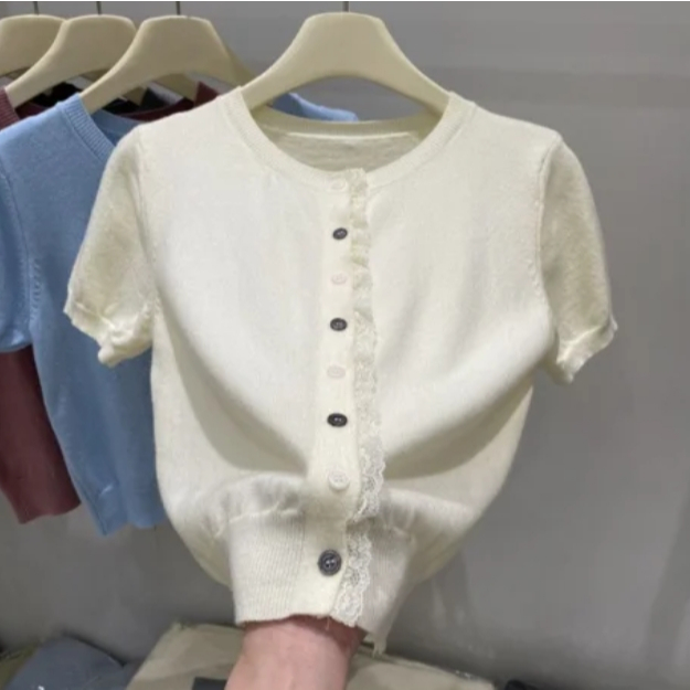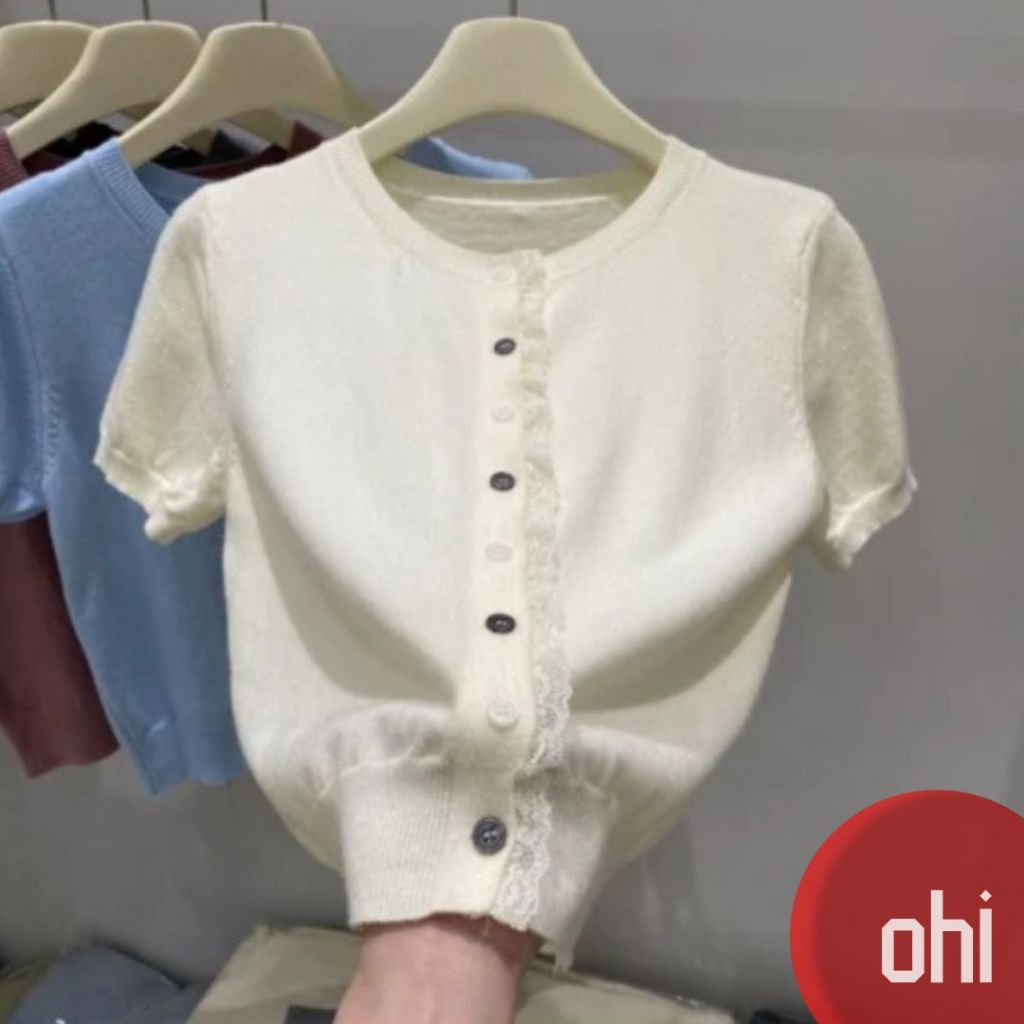 【ohi】蕾絲邊拼接短袖針織小開衫 針織開衫 罩衫 外套 小外套 開衫外套 女上衣 女裝 GWH2278黑色,F碼(均碼40-55KG可穿)|白色,F碼(均碼40-55KG可穿)|灰色,F碼(均碼40-55KG可穿)|粉色,F碼(均碼40-55KG可穿)|藍色,F碼(均碼40-55KG可穿)OHI衣著